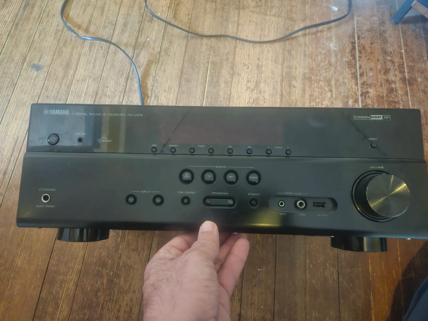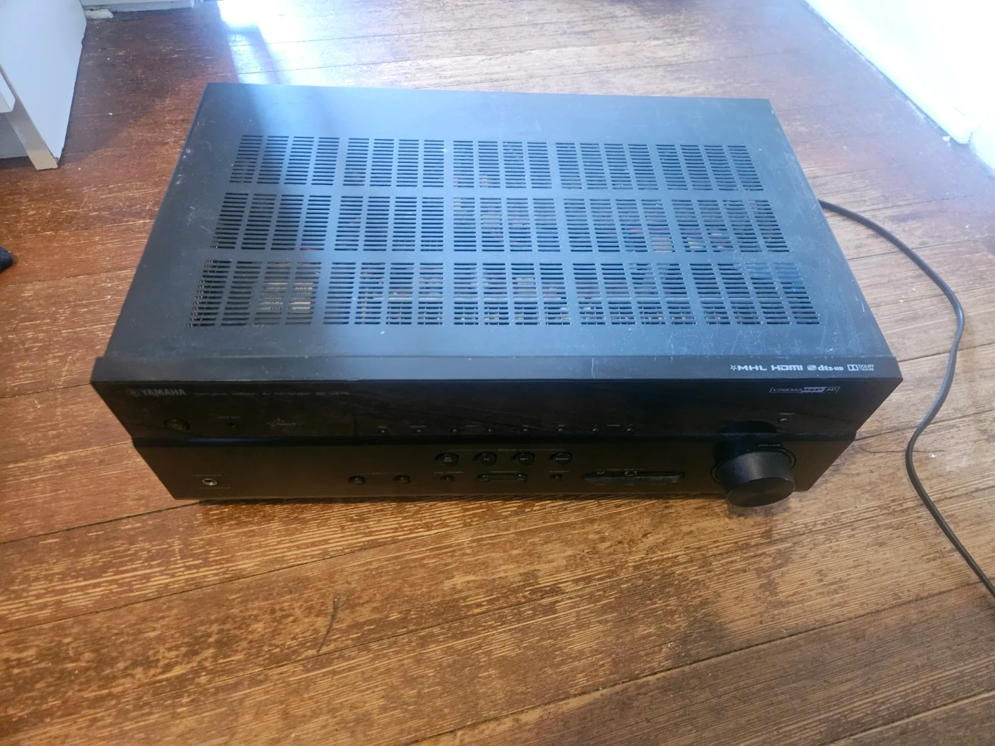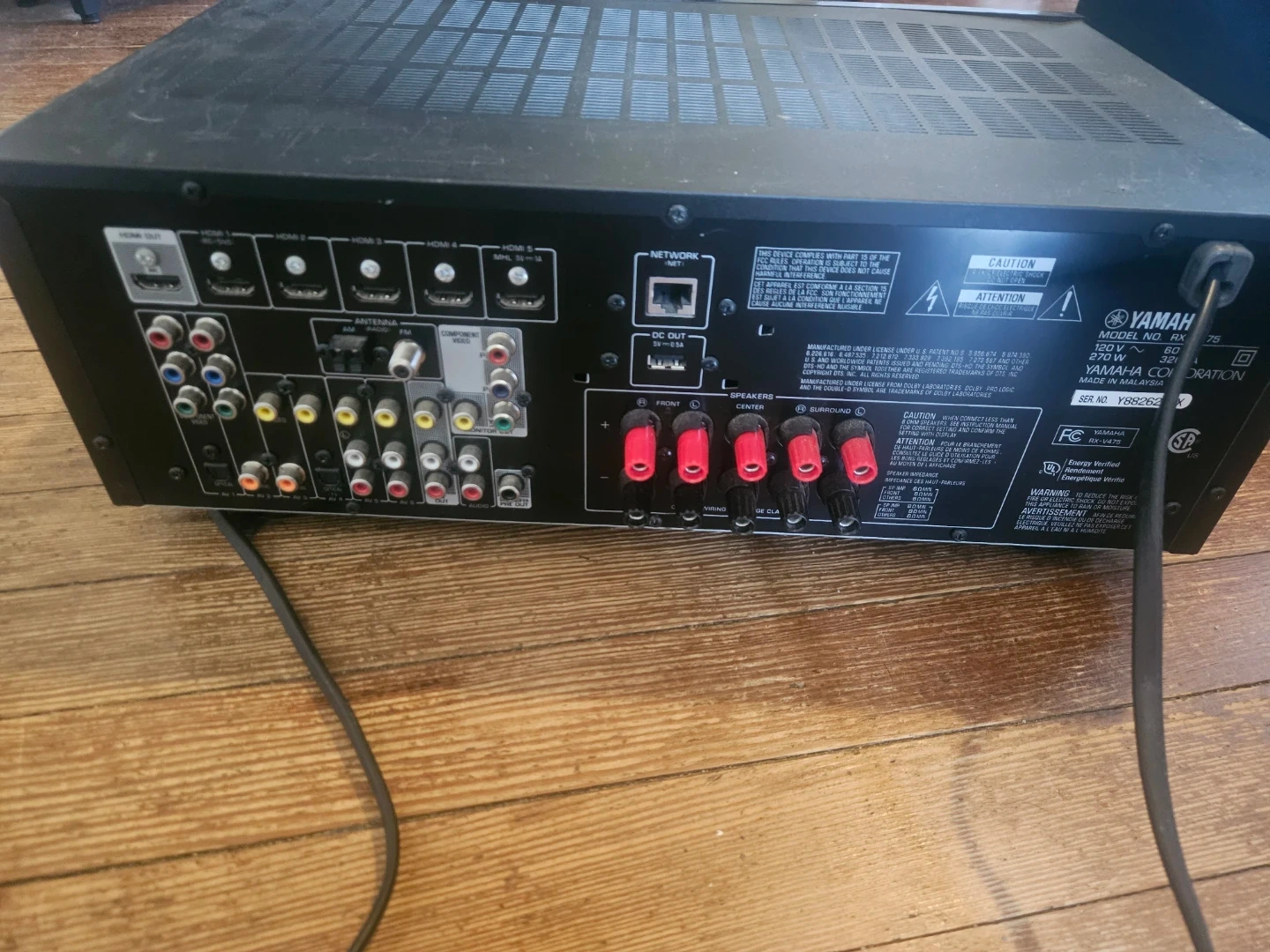 Yamaha Natural Sound AV Receiver RX-V475. Supports MHL, HDMI, and Dolby Digital.