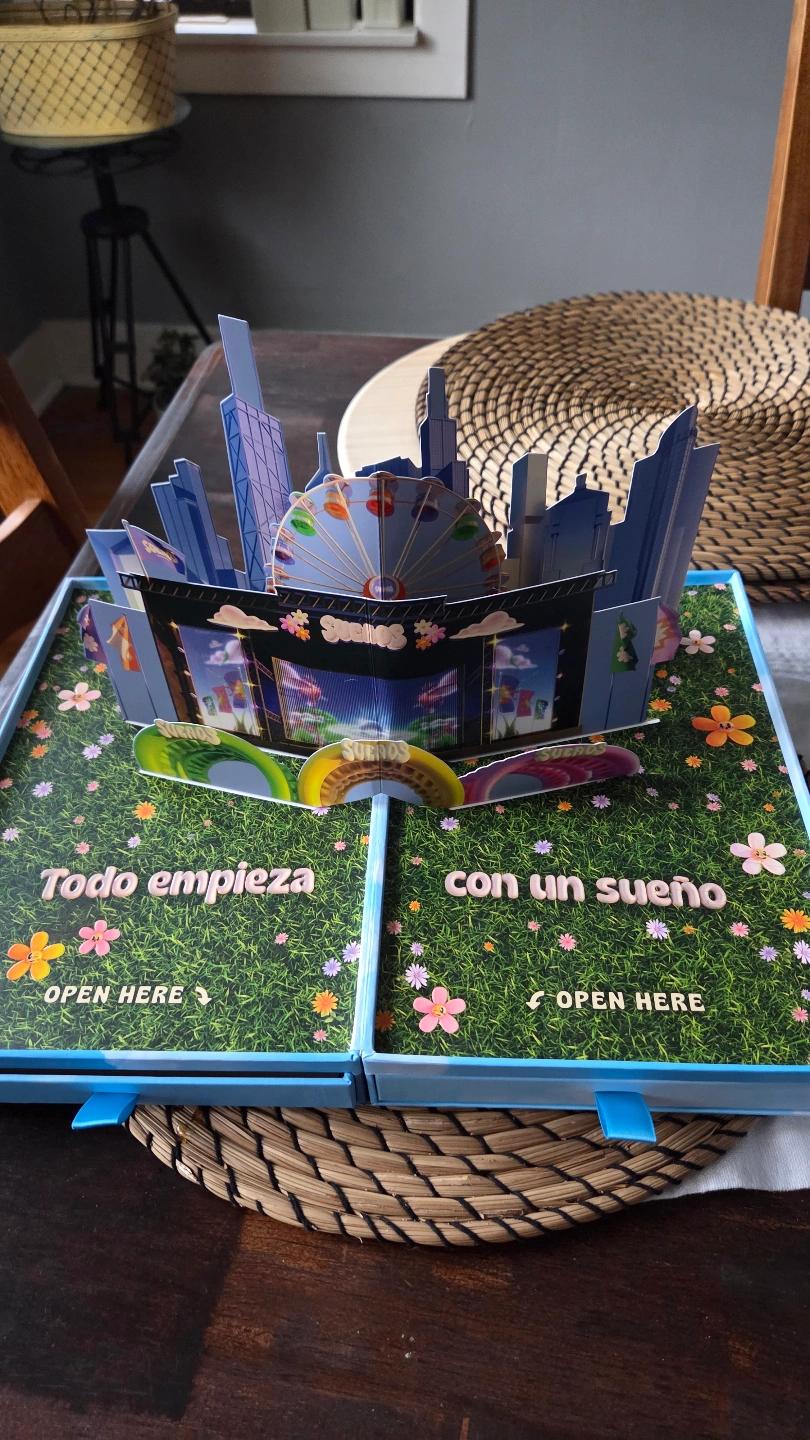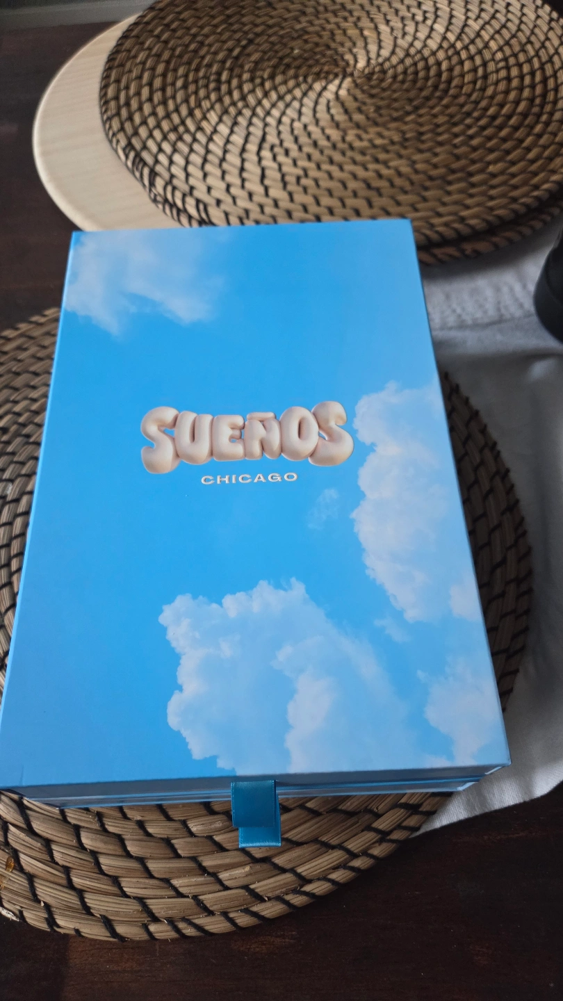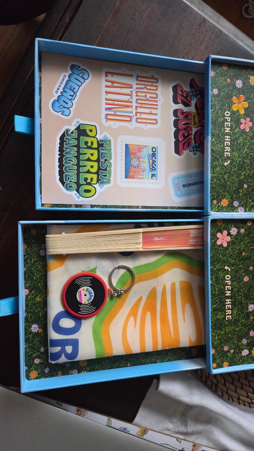 Merchandise box from Sueños Festival 2025 in Chicago. Includes stickers, hand fan, keychain, and small tapestry. Pop-up box design. Excellent condition.