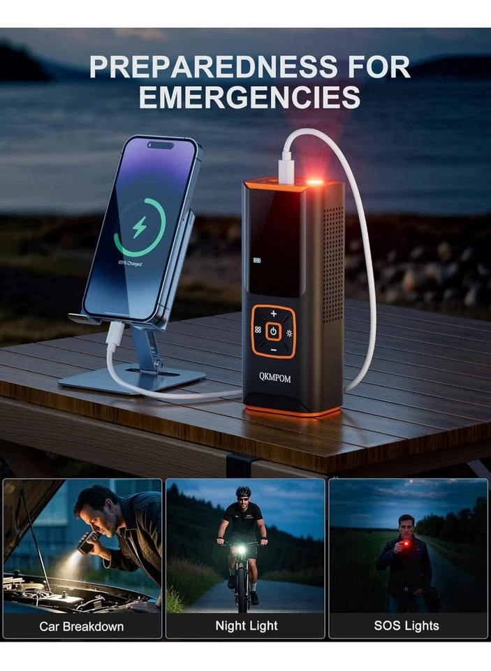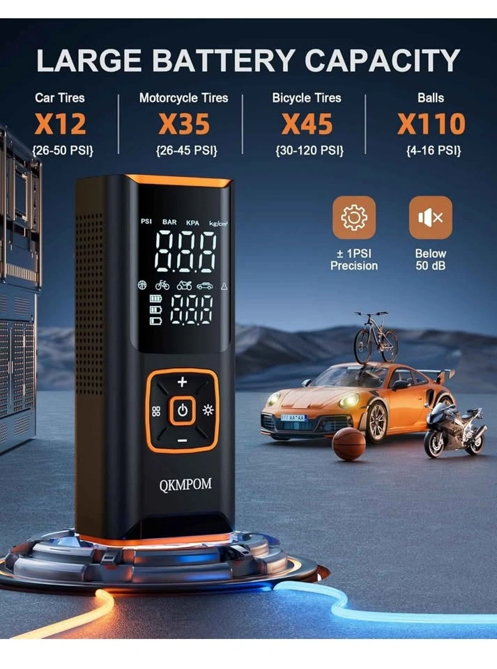 Tire Inflator Portable Air Compressor, 6X Faster 180 PSI Cordless Air Compressor, Air Pump with Pressure Gauge - Portable Tire Inflator for Car, Pickup, Motor, Bicycle, Balls and More