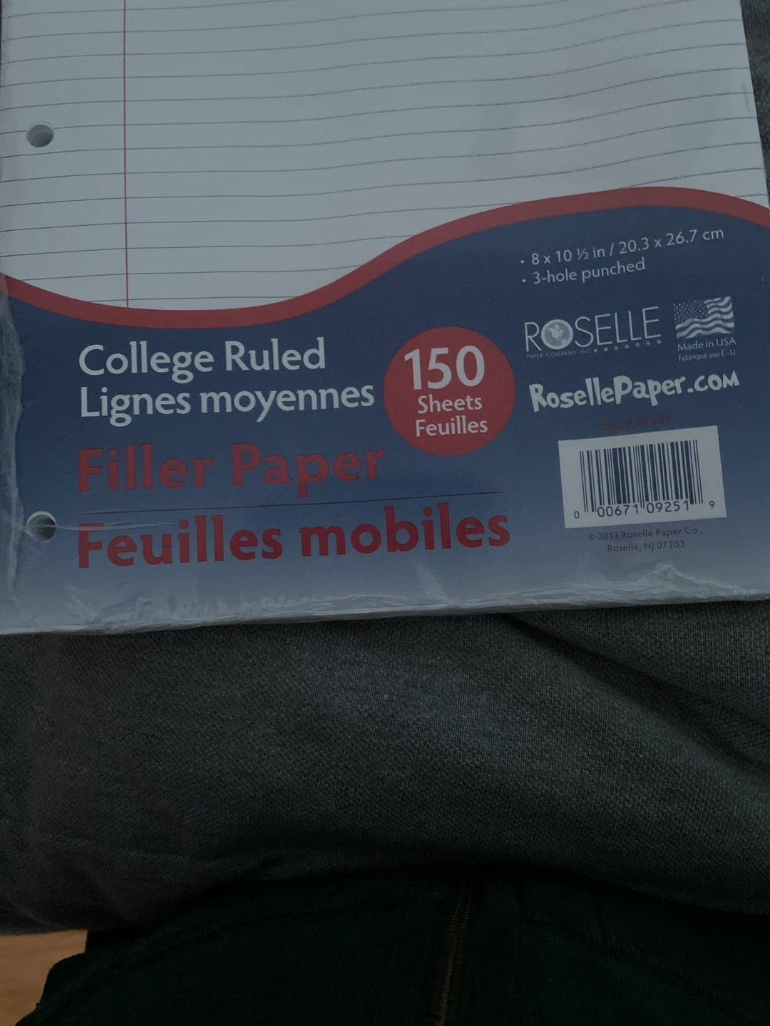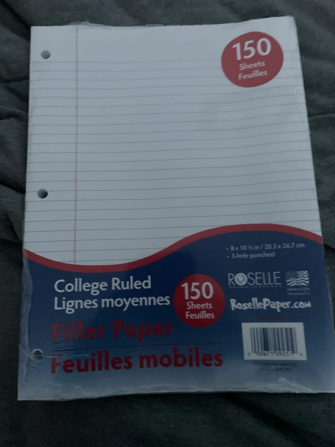 College ruled filler paper with 150 sheets. It's 8 x 10 1/2 inches and 3-hole punched. Made in USA. This paper's great for school notes or general writing tasks!