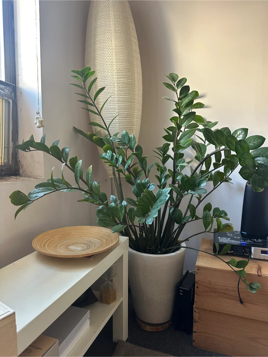 22Selling a healthy ZZ plant in a white ceramic pot. It's a great low-maintenance plant that thrives in low light conditions, perfect for adding some greenery to your home!