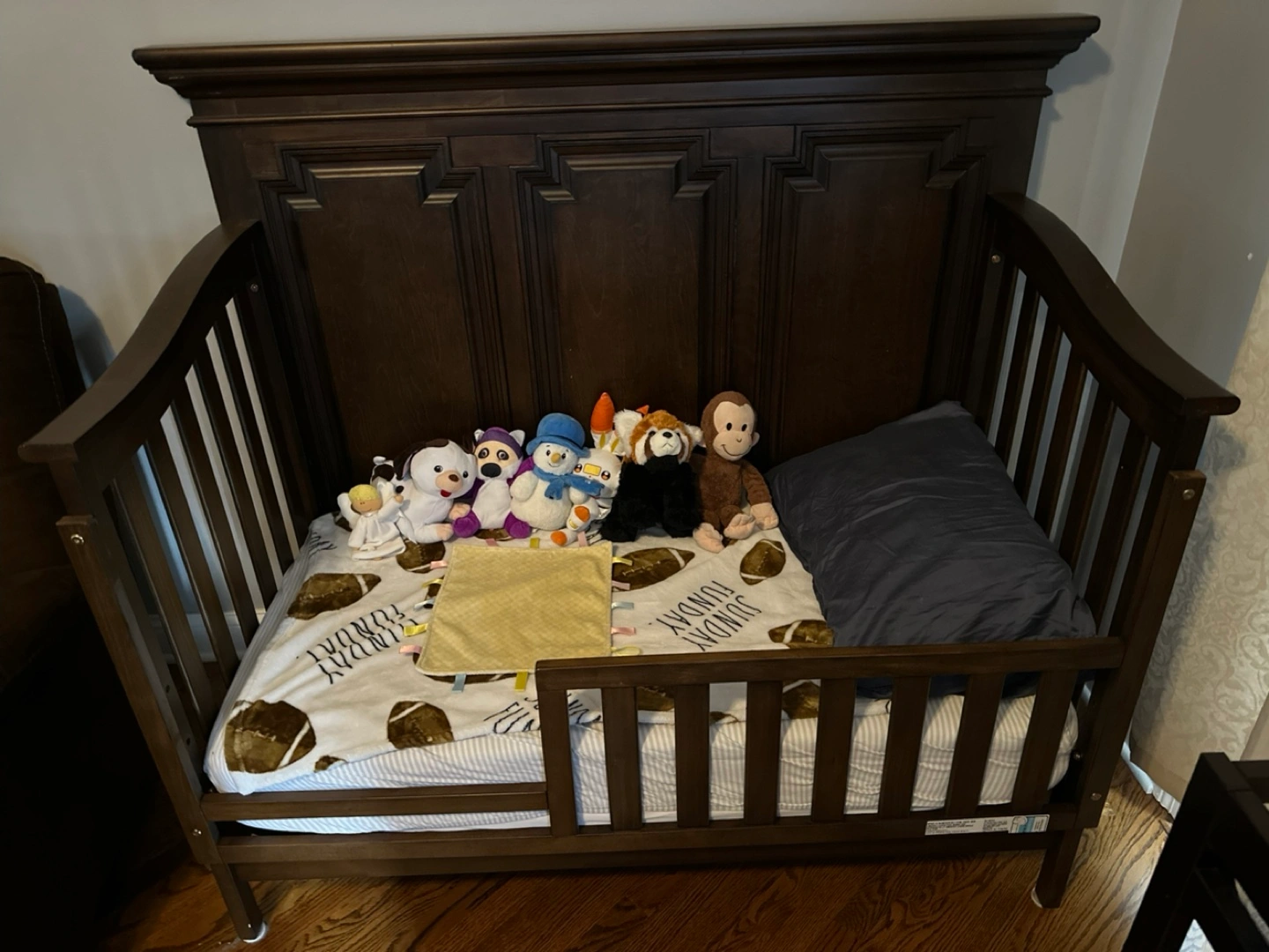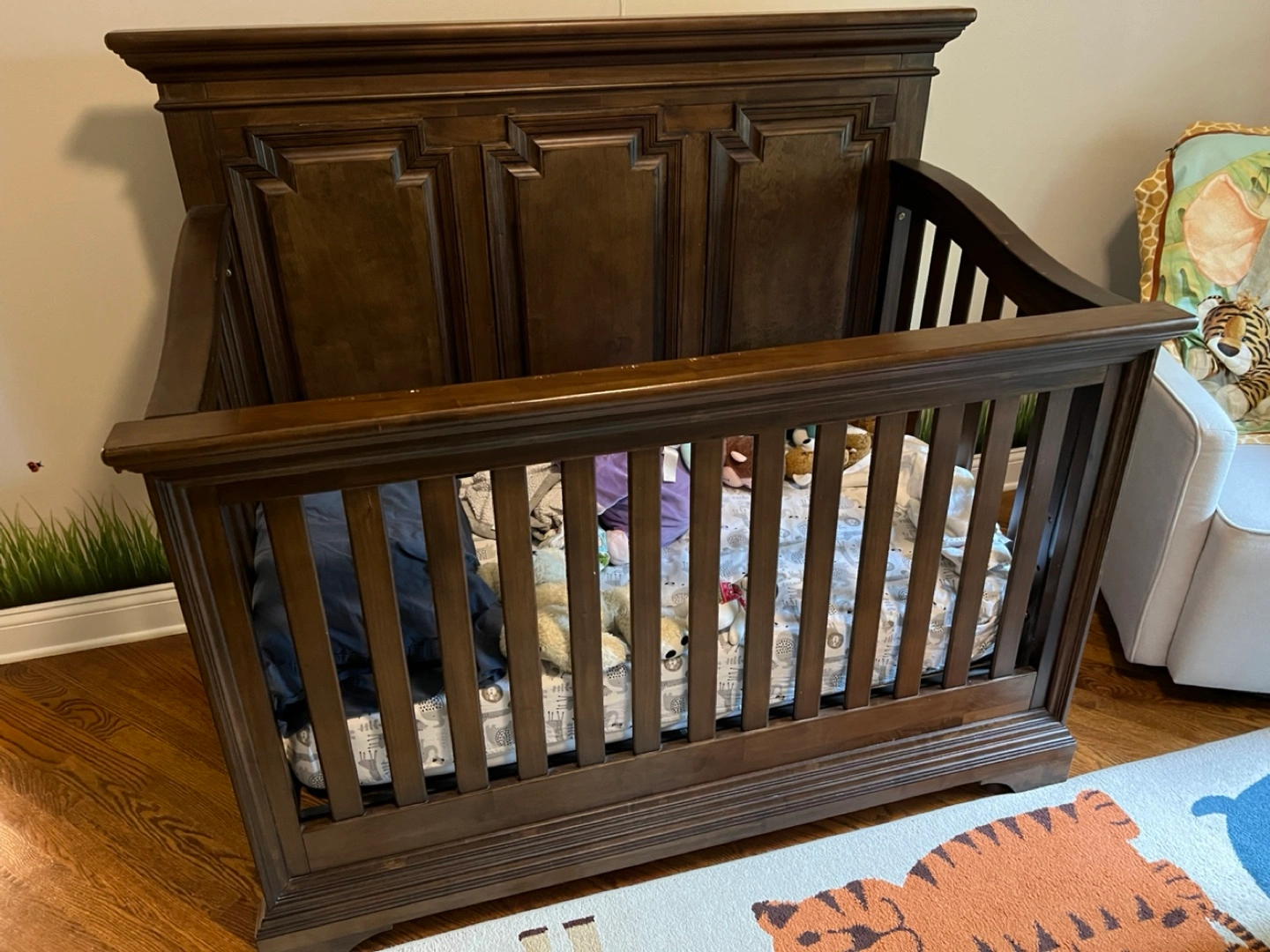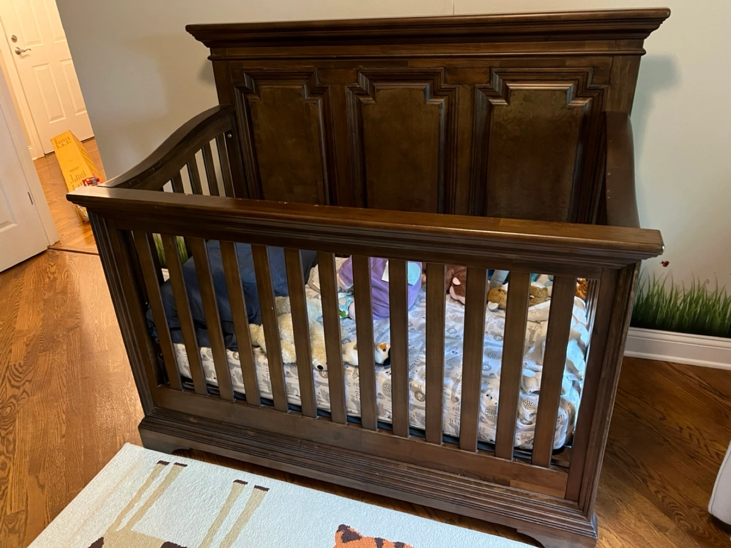 The crib is an excellent condition as we only used it a few years due to space limitations and is made of solid mahogany wood. Originally paid $600+ for this crib!