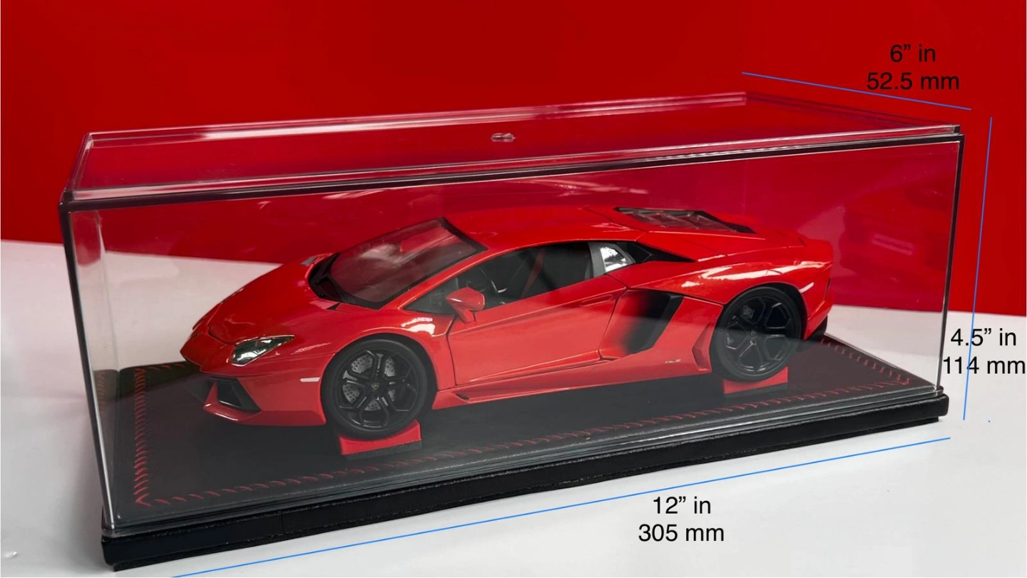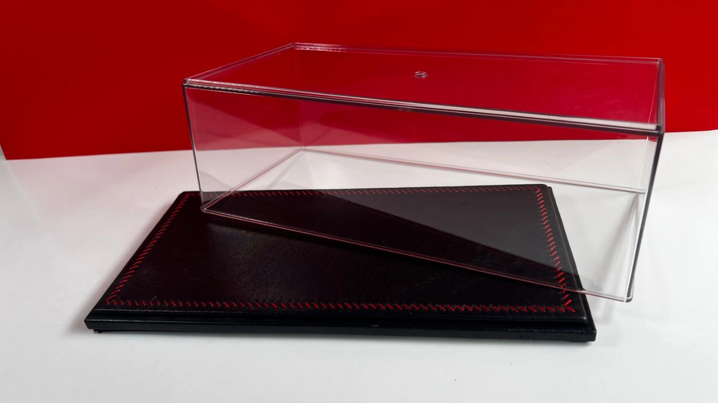 5Custom-made display case for 1:18 scale model car. Includes genuine leather as the base, clear acrylic cover, and colour-matched inserts. Multiple colours available. Perfect for collectors.