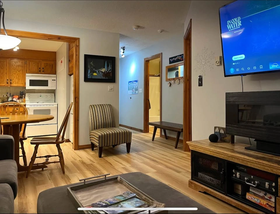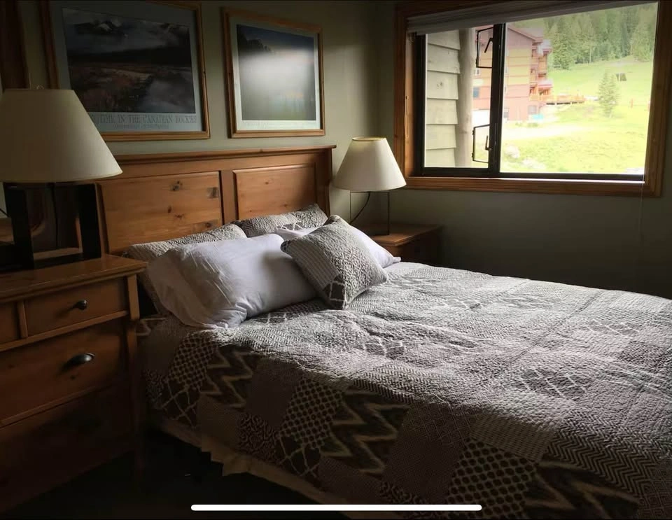 15Availability from now until the end of November, 2025. Bright and cozy ski in / ski out condo at Fernie Alpine Resort's (Griz Inn). You will be a stones throw from the Fernie Alpine Resort Village, the on hill grocery store (pantry), restaurants, pubs and shops. This is an incredible spot for an individual or couple transitioning to Fernie, working remotely in the off season or enjoying an extended vacation experience. Enjoy stunning mountain views from the comforts of the living room. Once here, you won't need a car, but free parking is provided for guests. Other free amenities include: Wi-Fi, an outdoor hot tub, indoor swimming pool, air conditioning in the summer, ski storage lockers, bike room in the summer and a ski waxing room in the winter. Full accessibility (wheel chair/stroller) with elevator access to all floors of the Griz Inn is available from the back entrance of the building. The condo features a cozy living room with a queen size chaise sectional sofa bed, and chair, 51 inch smart TV and dining set that comfortably seats 4 people. The kitchen is equipped with a full range of appliances - everything you need to treat yourself with delicious meals on vacation. The living room is connected to a balcony where you can enjoy views while drinking your morning coffee. Bedroom has a queen size bed with great views of the ski hill and includes black out blinds to help keep the room dark in the mornings. Bathroom offers: hairdryer, large mirror, bathtub / shower. Fully equipped kitchen features: coffee maker, cooking/eating utensils, dishwasher, fridge, glassware, kettle, microwave, oven, stove, toaster, slow cooker and an electric BBQ on the balcony Airbnb listing to get a better idea of the place with more photos: airbnb.com/h/ski-in-ski-out-fernie