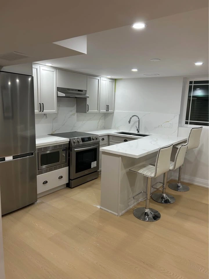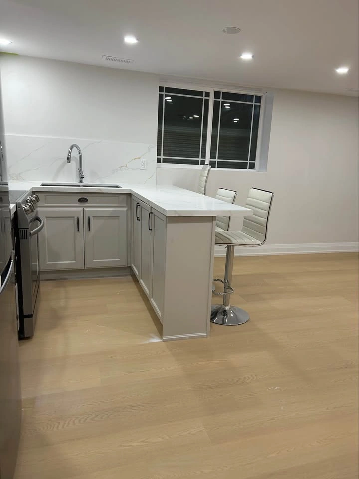 10One bedrooms legal basement apartments near Trillium hospital is for rent. Beautifully newly renovated basement apartment with huge windows is for rent in Prime Mississauga Location. This stunning property has a lot of pot lights, vinyl flooring, high-end designer finishes, quartz countertops, stainless steel appliances, custom made coat closet, quartz island for breakfast and spacious living filled with natural light. The bedroom has big window and huge wardrobe organizer with attached bathroom. The bathroom has shower jets with standing shower. Located In Downtown Mississauga, Near To Cooksville Go Station, 400, 401 & 403 Highways, QEW, Pearson Airport, Square One Mall, Shops And Schools. Please call Javed at [hidden information].