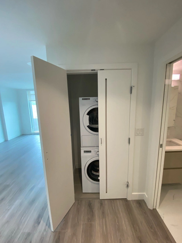 All-in rate. Rent includes all utilities: Telus fibre optic internet, BC Hydro, Fortis Gas, 1 parking stall, storage locker, A/C, heat pump. Pets allowed. Brand new condition. Storage Space: Yes Air Conditioning: Yes Smoking Permitted: No Unit Type: Apartment Bicycle Parking: Yes Agreement Type: 1 Year Elevator in Building: Yes Gym: Yes Audio Prompts: Yes Cable / TV: No Visual Aids: Yes Heat: Yes Dishwasher: Yes Pet Friendly: Yes Braille Labels: Yes Bathrooms: 1 Water: Yes Move-In Date: 2025-11-01T00:00:00Z Bedrooms: 1 Laundry (In Unit): Yes Parking Included: 1 Hydro: Yes Balcony: Yes Internet: Yes Concierge: Yes Fridge / Freezer: Yes Wheelchair accessible: Yes 24 Hour Security: Yes Yard: No Laundry (In Building): No Size (sqft): 500 Barrier-free Entrances and Ramps: Yes For Rent By: Professional Pool: No Accessible Washrooms in Suite: Yes