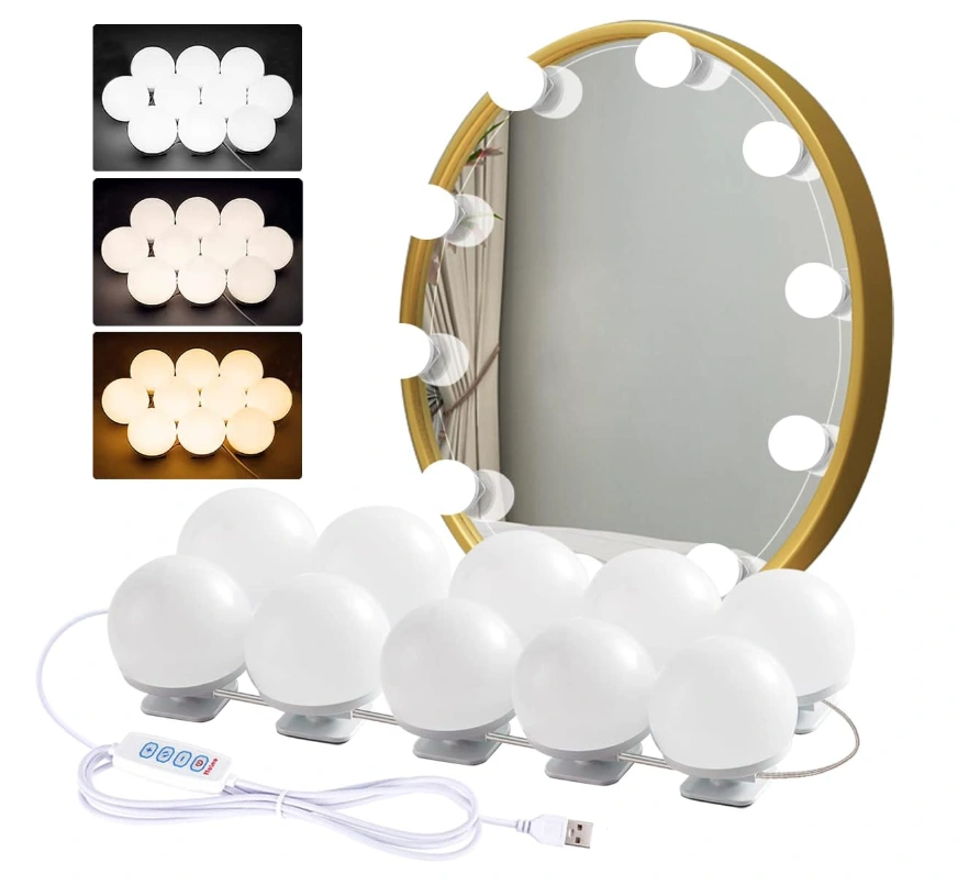 1000+Mirror lights with ten bulbs with USB plug. Comes with three colour lighting modes.