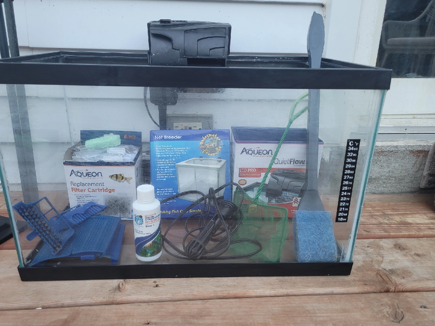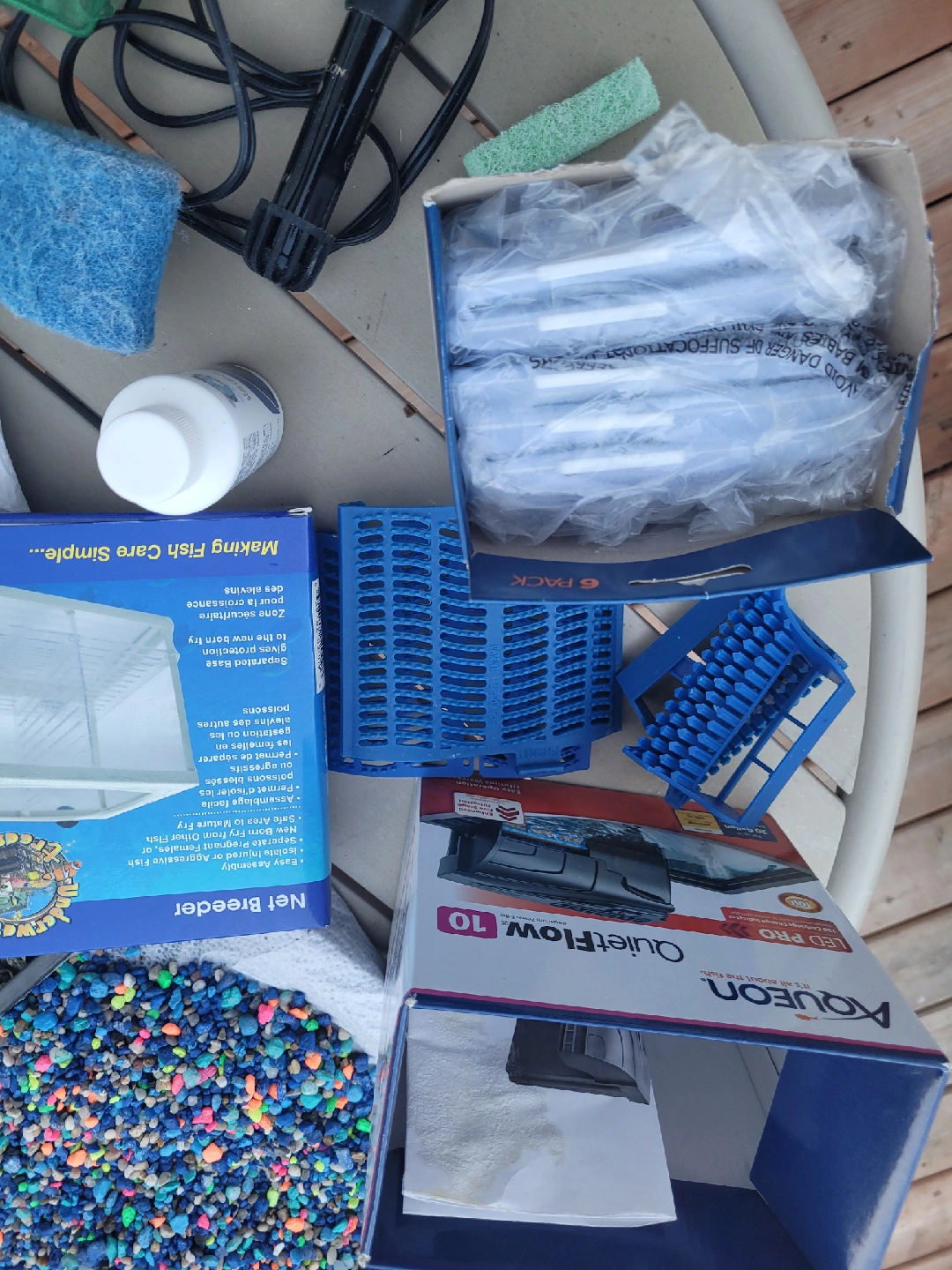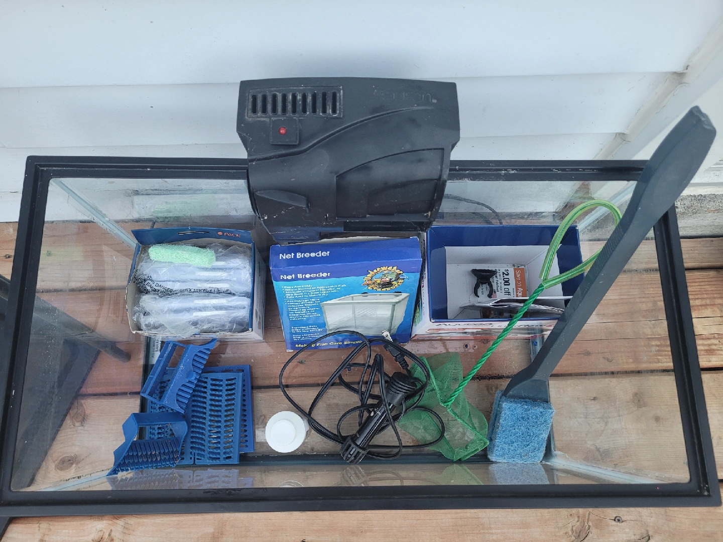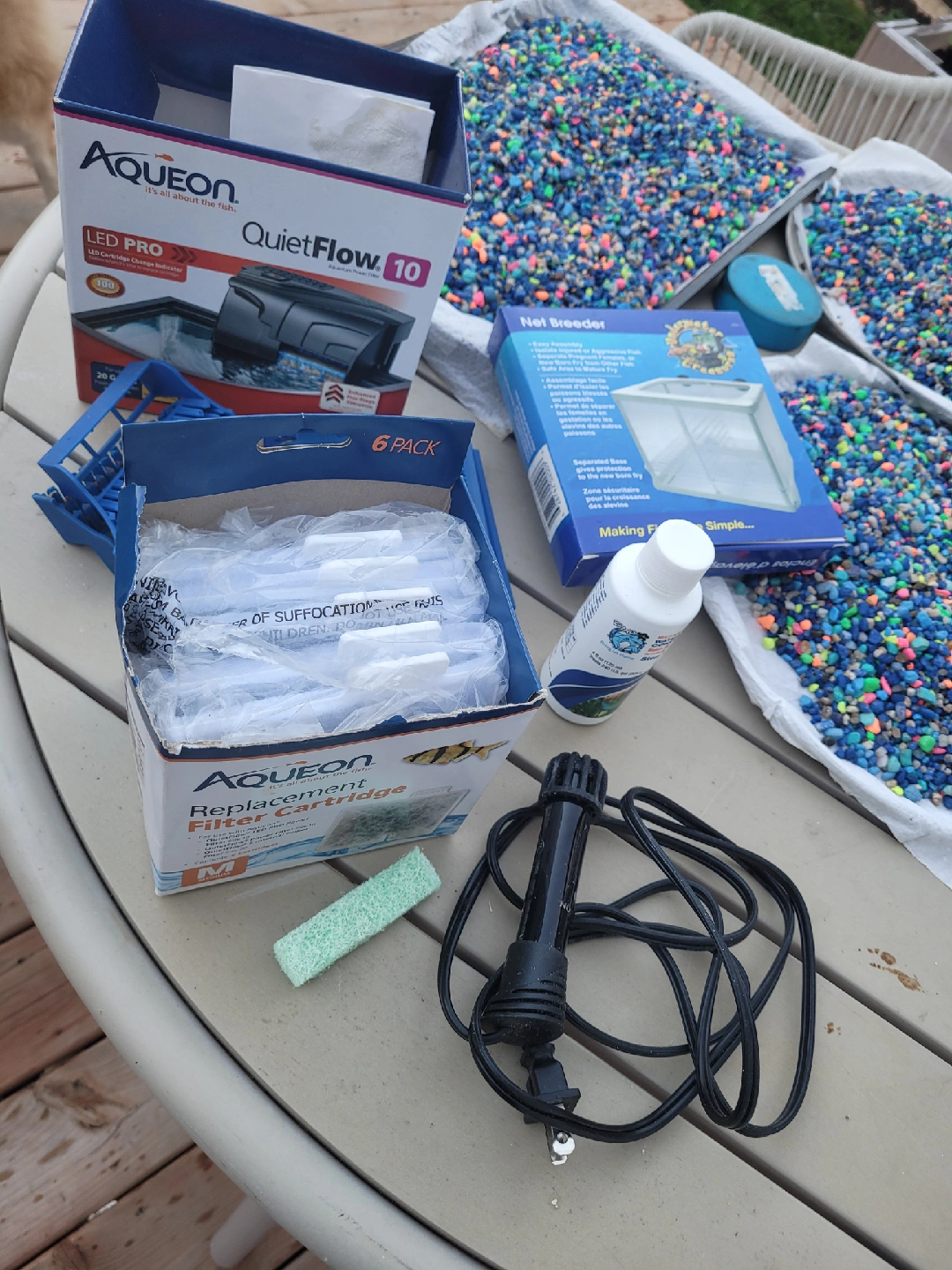 Selling a variety of Aqueon aquarium accessories! This includes: - Aqueon QuietFlow 10 LED PRO filter - Aqueon Replacement Filter Cartridge (6 pack) - Net Breeder - Fish net - Aquarium gravel - Heater - Other accessories as pictured!