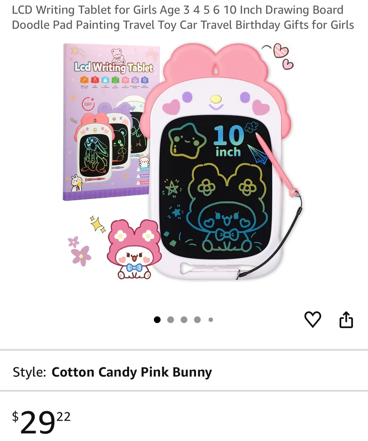 20Selling a cute LCD writing tablet in brand new condition! It's a Cotton Candy Pink Bunny style and measures approximately 33.4cm x 21.3cm. Features include one-click erase, replaceable batteries, an elastic strap, and a canvas lock. Perfect gift for kid’s birthday or Christmas! Cash only. Pick up at Coquitlam City Centre Library / Metrotown Mall / Killarney Community Centre.