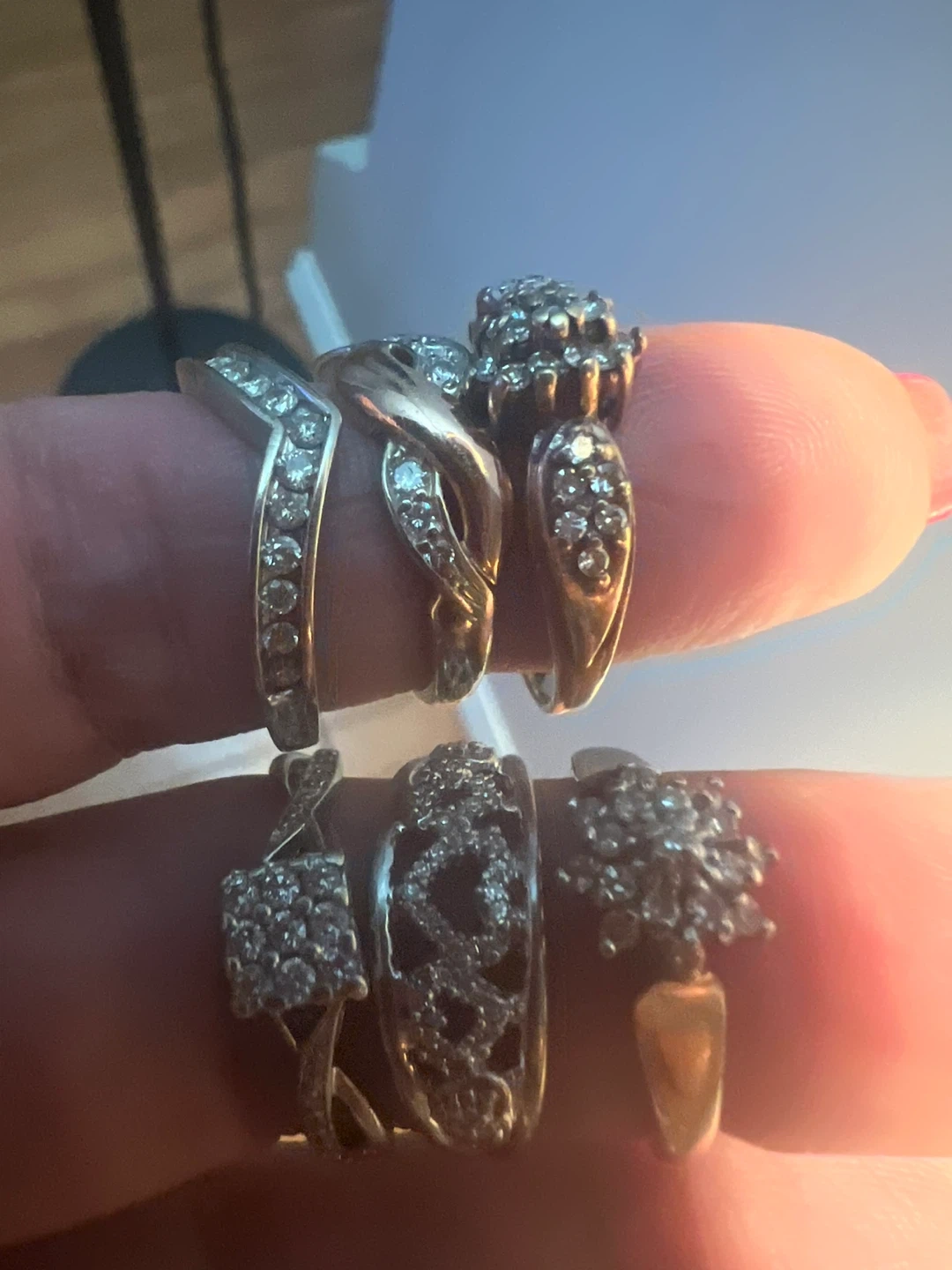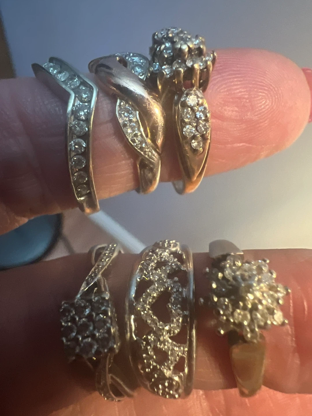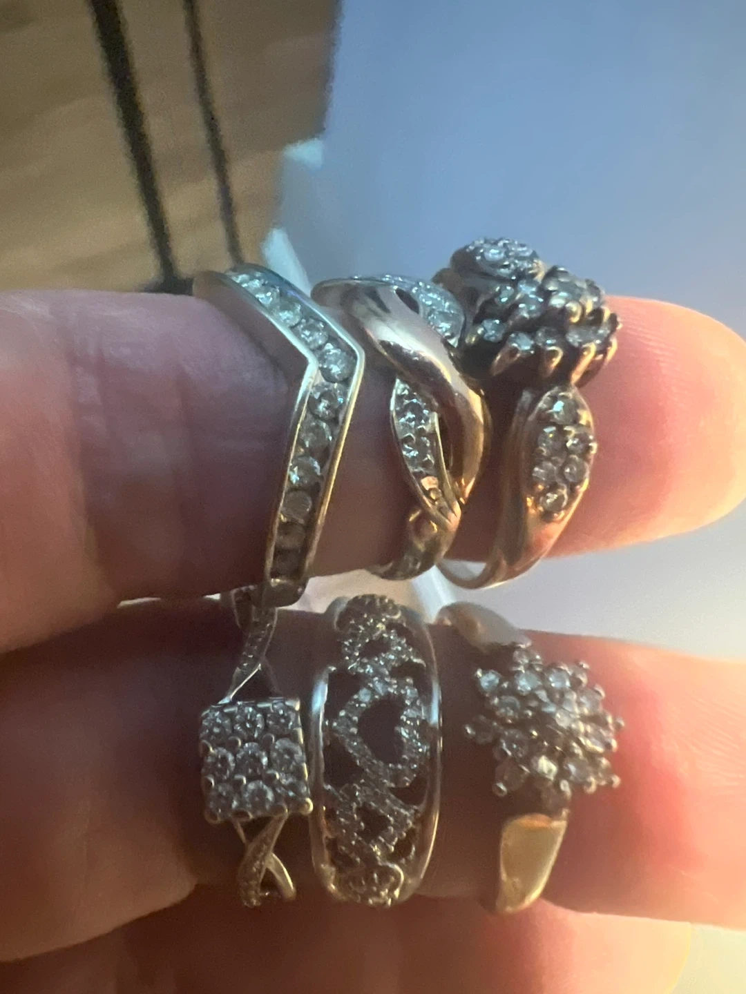 10 k diamond rings, each with its own unique design and sparkle! They feature various styles and settings, all adorned with diamonds. Perfect for adding a touch of elegance to any outfit North east 300 dollars each