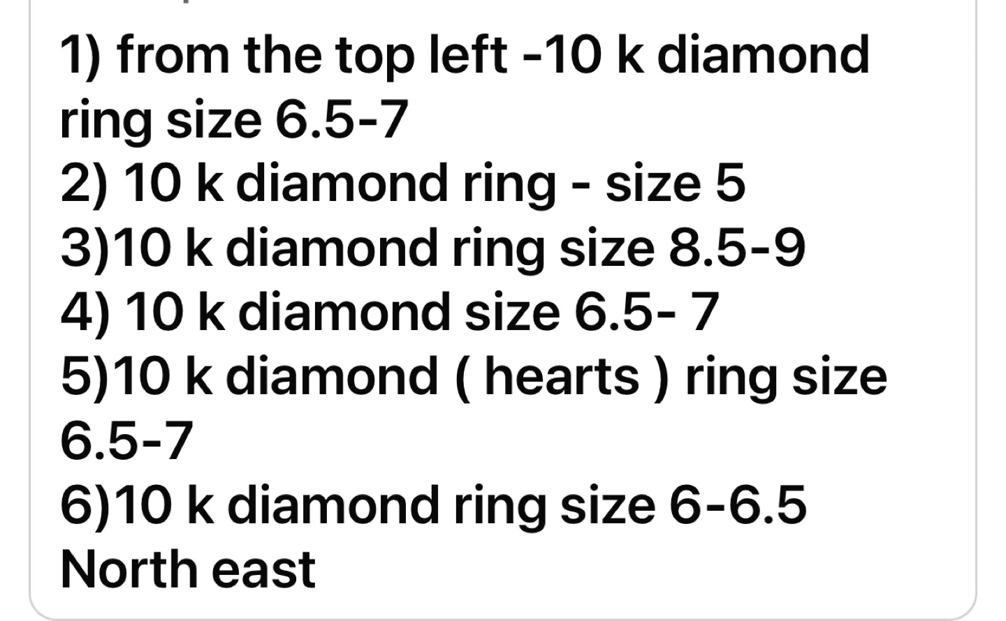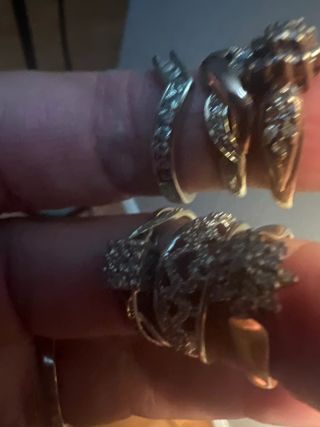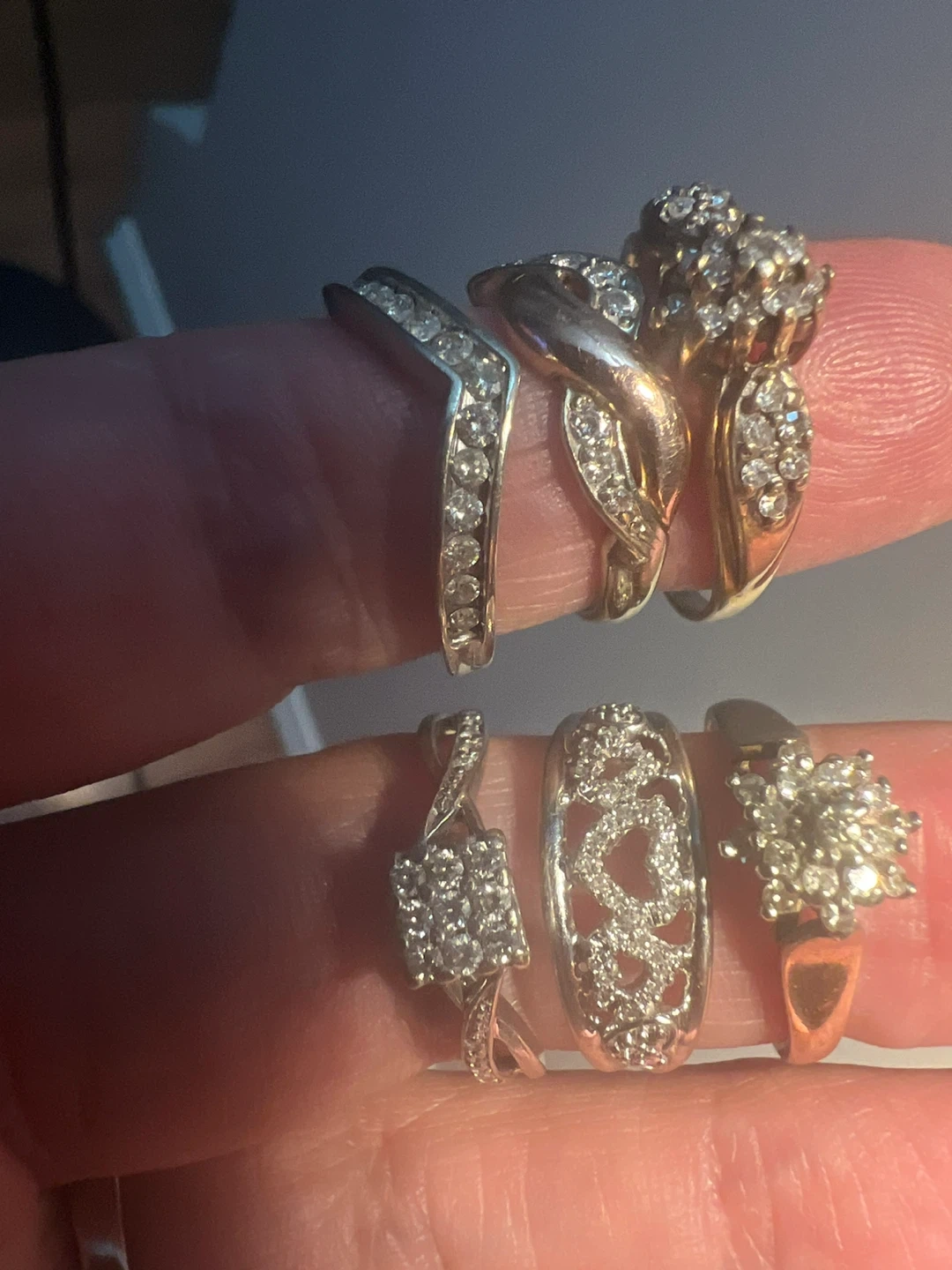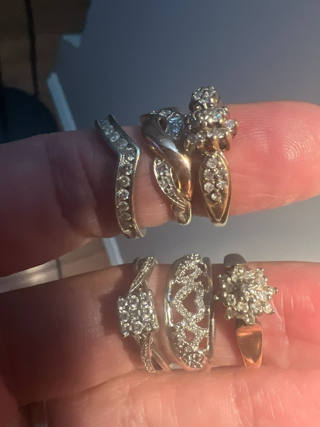 10 k diamond rings, each with its own unique design and sparkle! They feature various styles and settings, all adorned with diamonds. Perfect for adding a touch of elegance to any outfit North east 300 dollars each