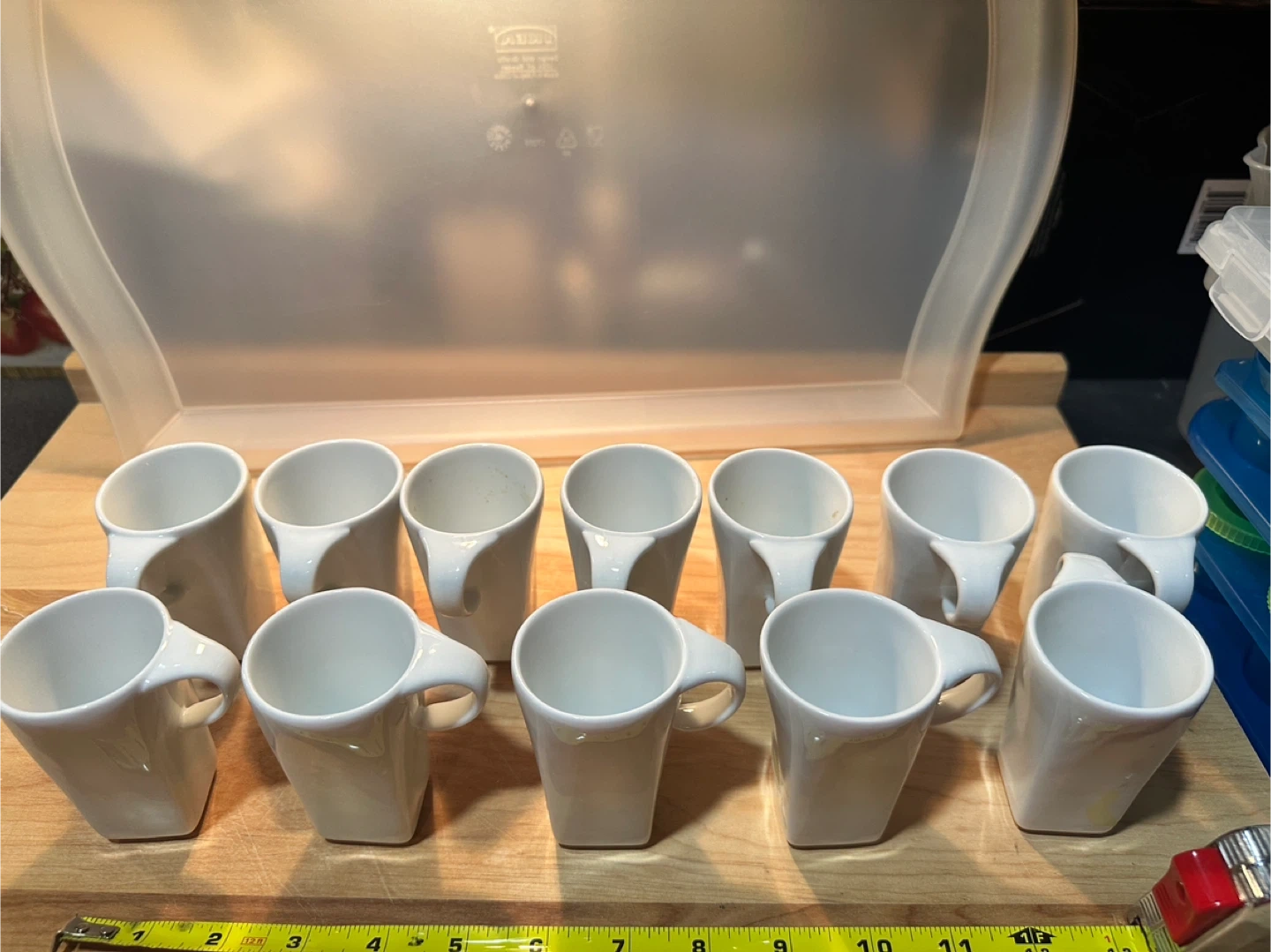 15Selling a set of 10 espresso cups in white. They are perfect for your morning coffee or for entertaining guests. Great condition and ready for a new home!