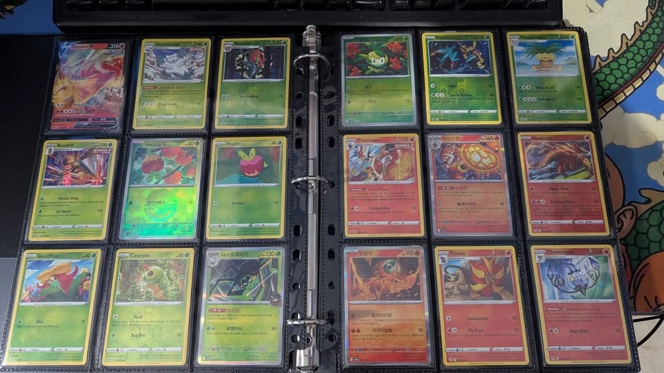 15This binder contains 100 holographic Pokemon Cards - No Energies or Bulk! All Cards are in Near Mint condition. A mix of Korean and English Cards.