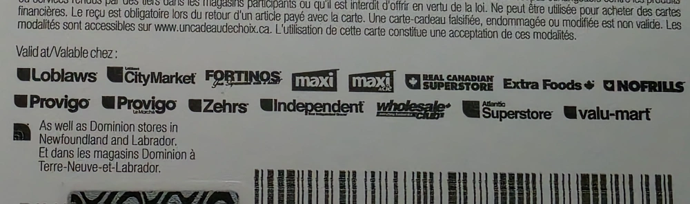 Can be used at these stores in the city: - Real Canadian Superstore - NoFrills - Wholesale Club I won this card at a draw but I have no need for it as I'm leaving the city soon.