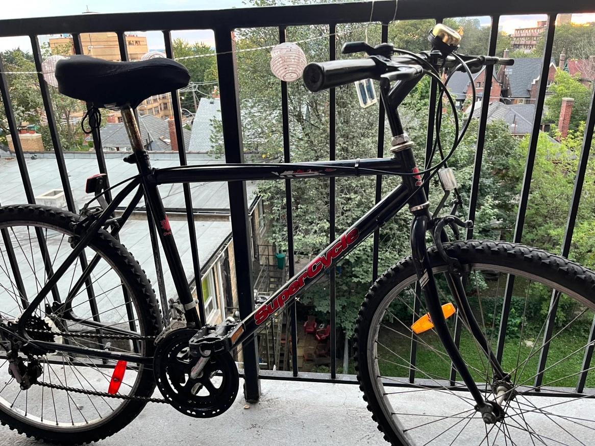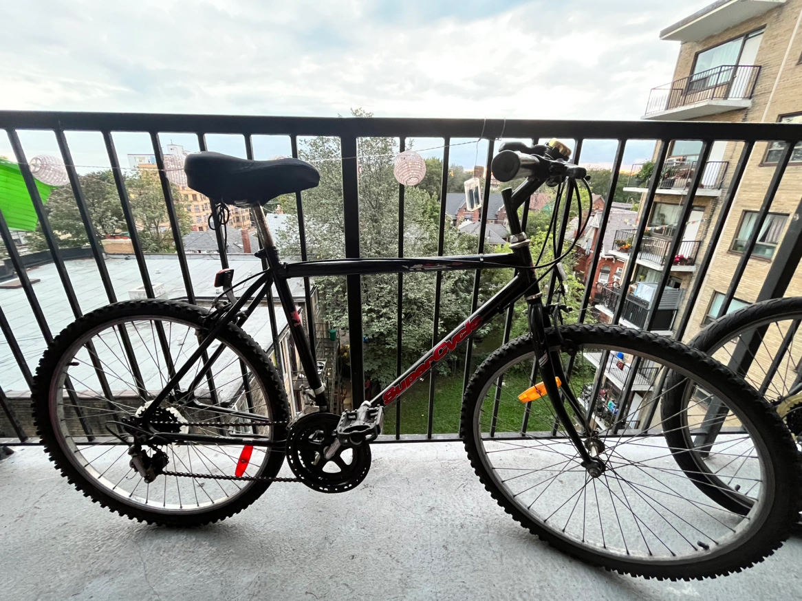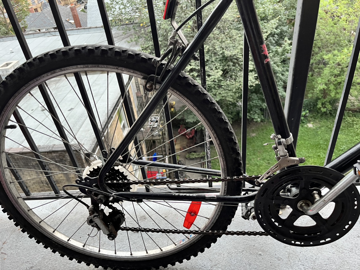 I was hit off of this bike on king and dufferin and the back tire is bent so you’ll have to replace the back tire, but everything else is in good condition.