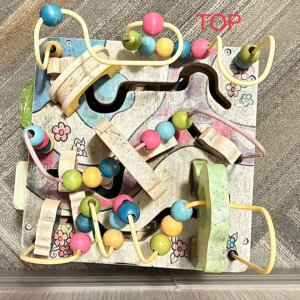 • move the colorful beads through the wire maze