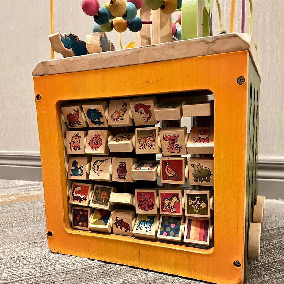 •activity cube also features zigzag paths that let you race each animal to the top and bottom