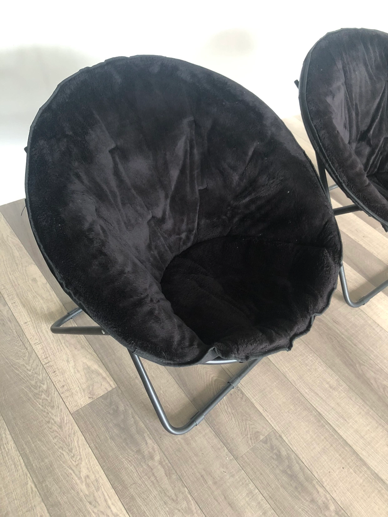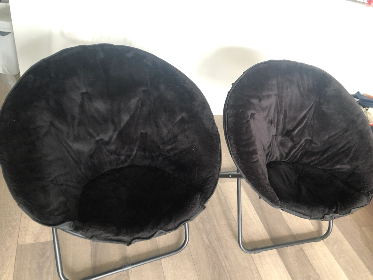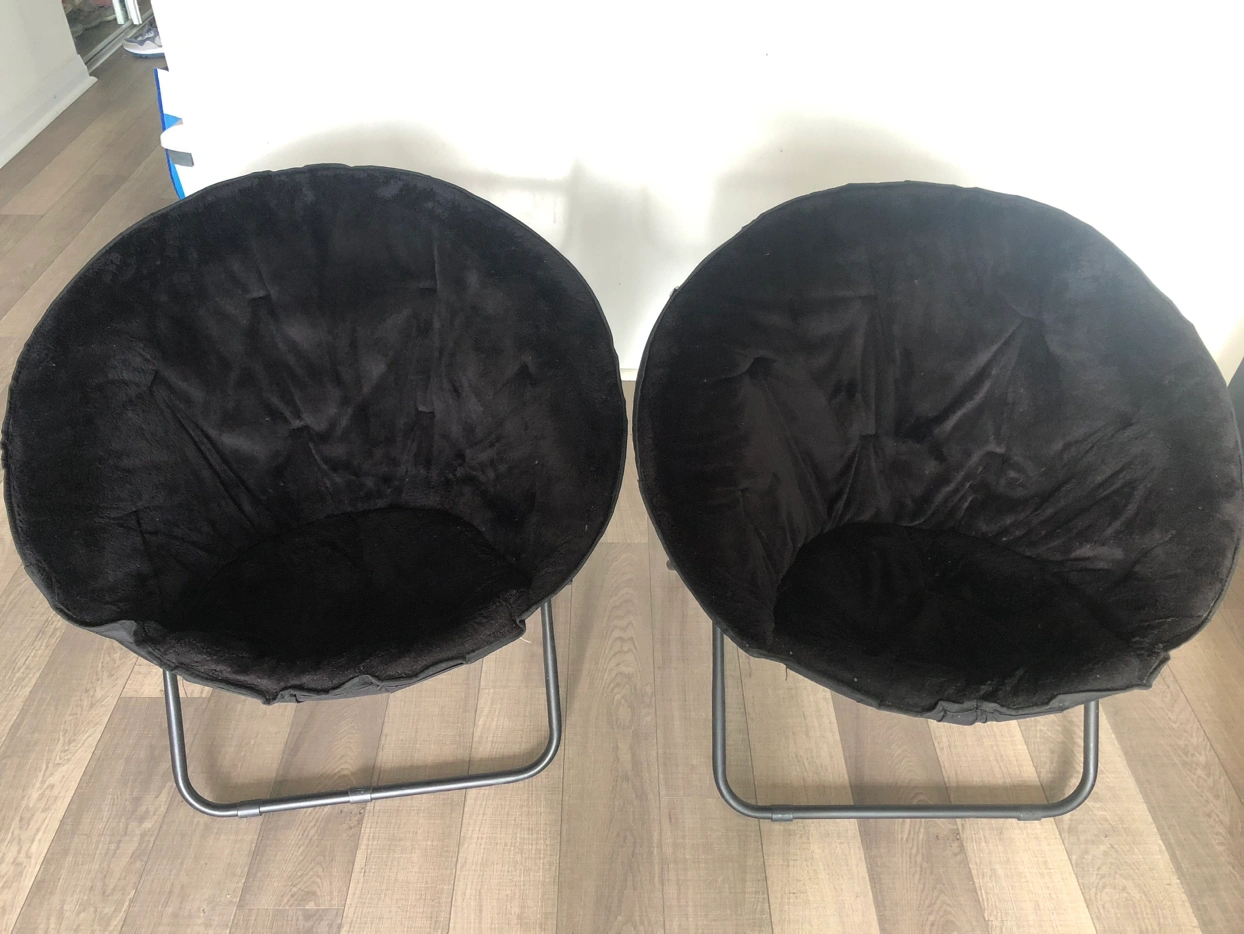 Moving out sale 2Folding Round Chairs with soft fur fabric,strong and like New. 2 for $70 and 1 for $35
