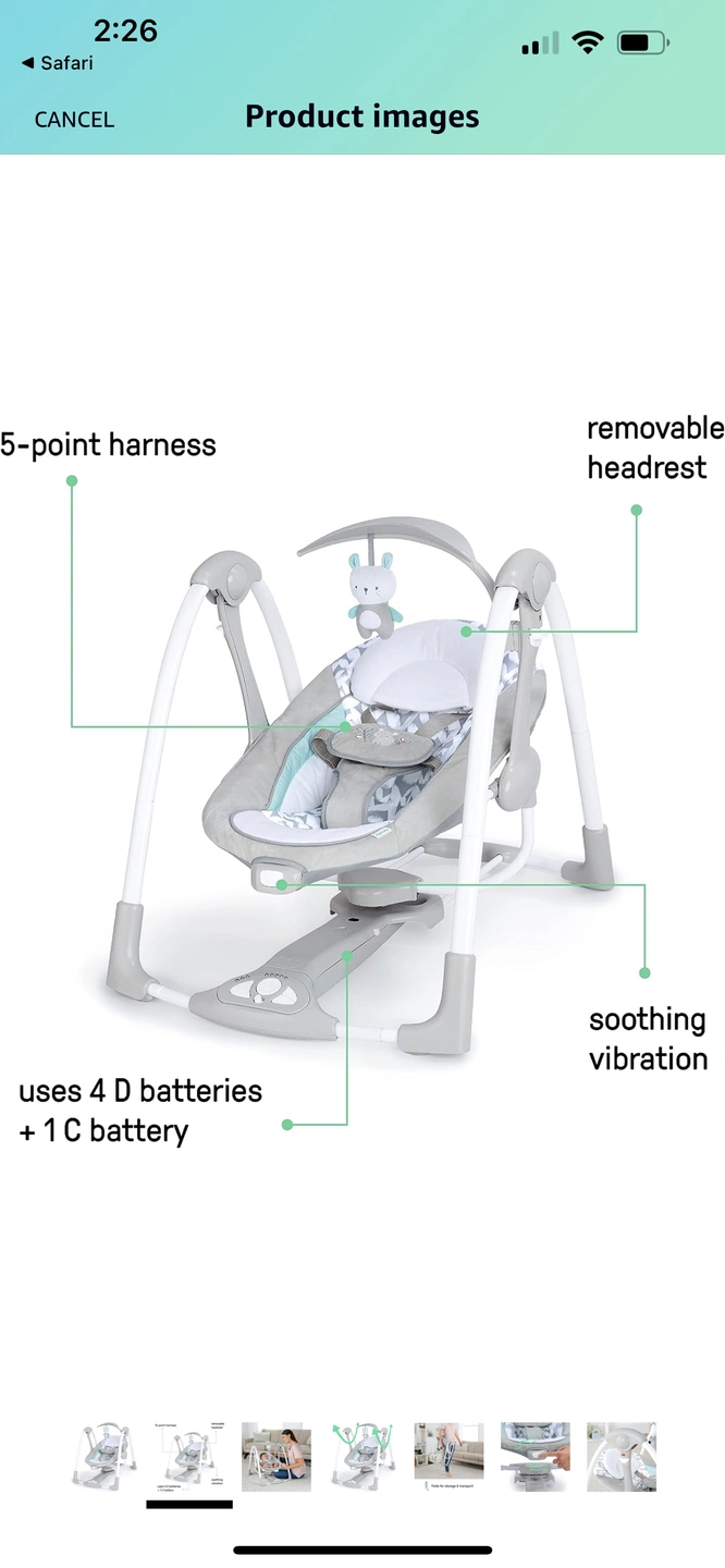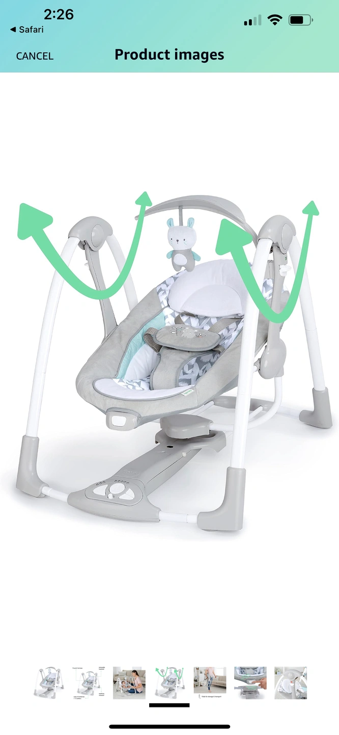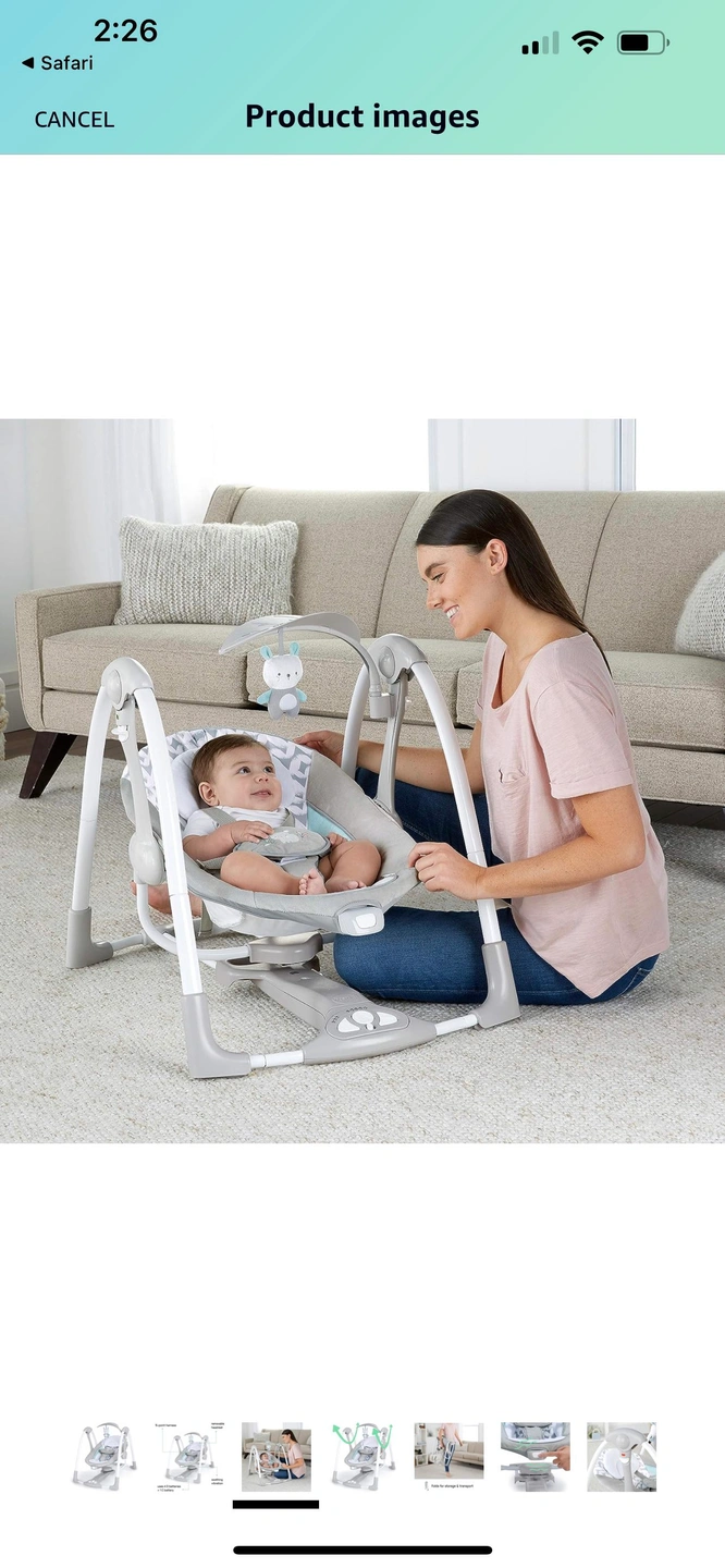 Your newborn can swing or sit in comfort with the ConvertMe Swing-2-Seat from Ingenuity while you get a few hands-free minutes back in your day. When your infant wants to sway, the automatic swing setting will calm and comfort. Convert it into a stationary vibrating seat with our secure EasyLock system. This travel friendly baby swing features a foldable design so it can lay flat for easy storage and portability. Soothe your little one with 12 melodies and 4 nature sounds, or keep him entertained with the pivoting toy bar. The plush seat pad and removable head rest are easy to clean. Wherever you need to go, this