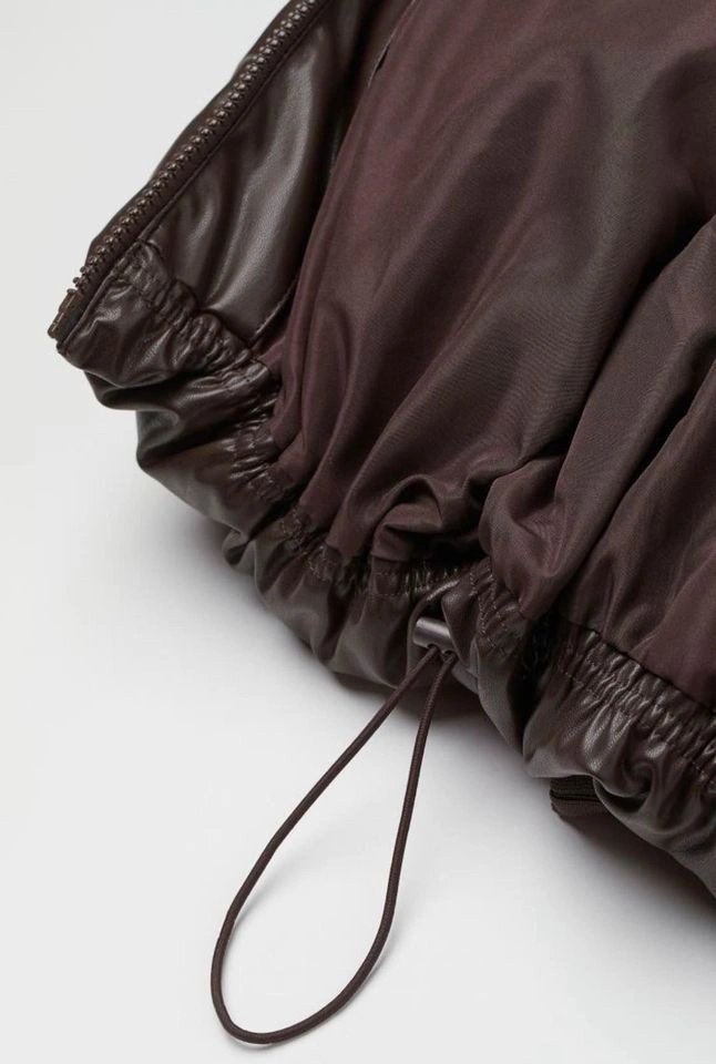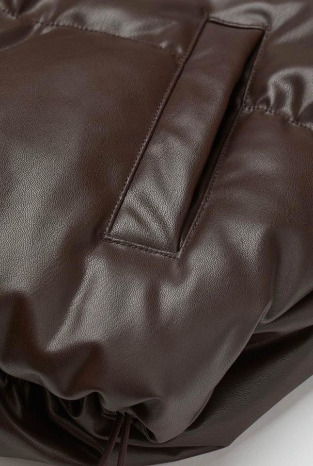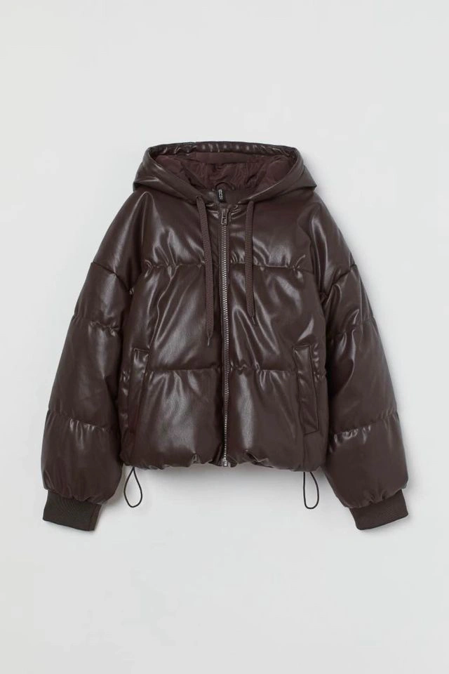 HM Boxy Hooded Faux Leather Puffer Jacket