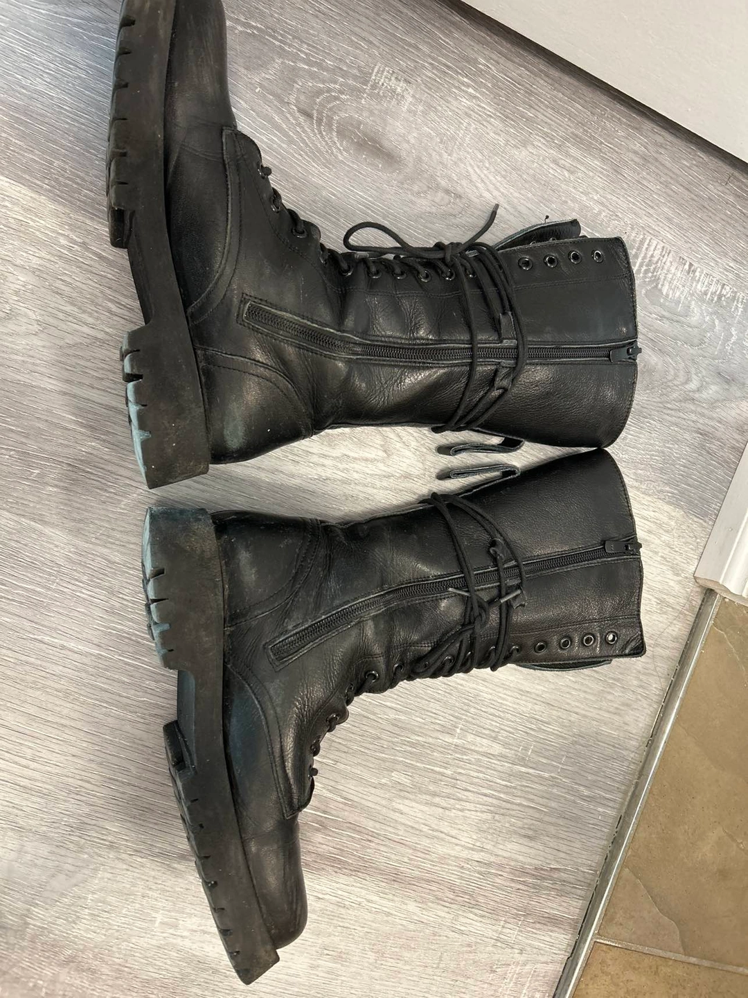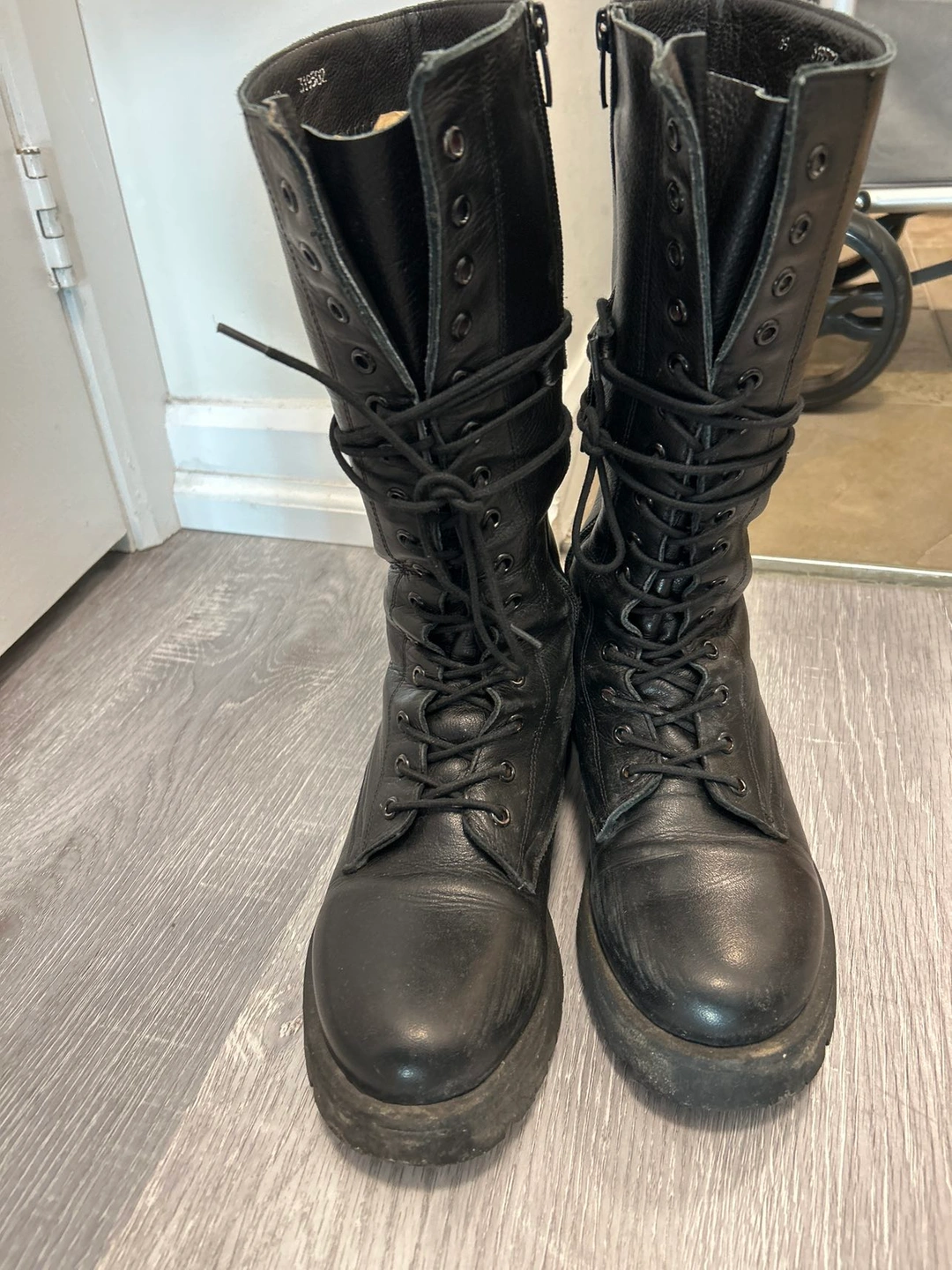 294Black leather boots in good condition. Please check the photos for soles.