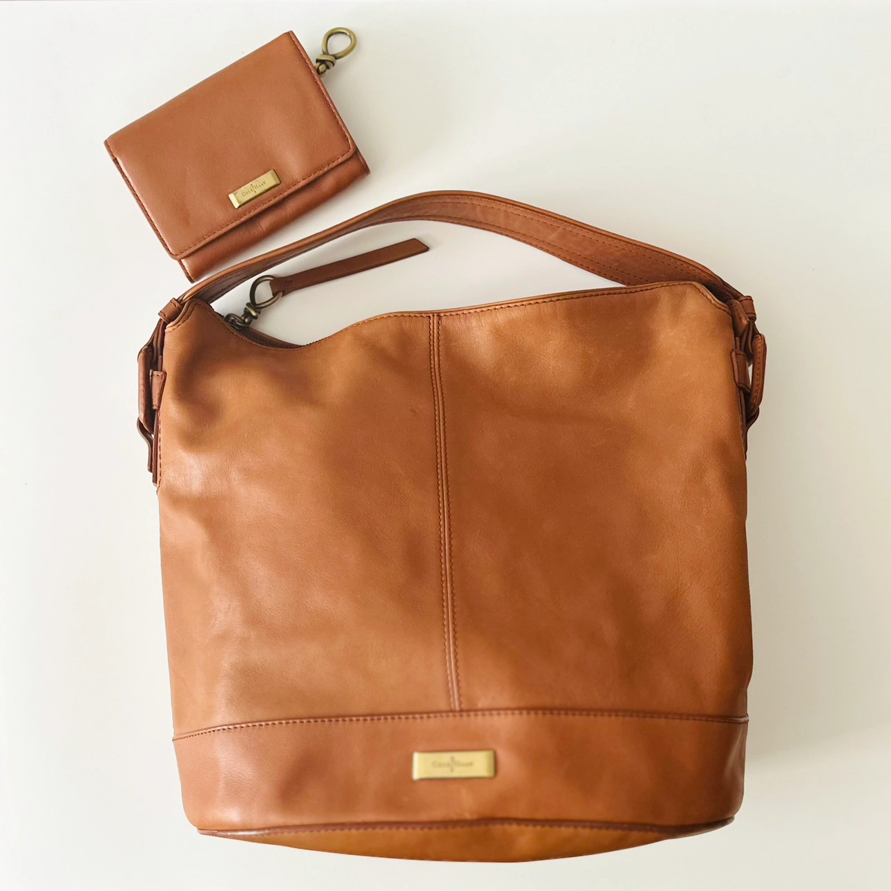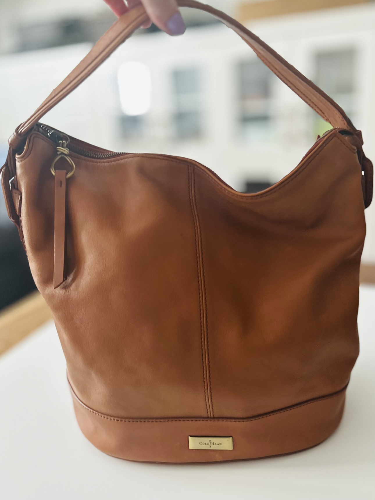 This big beautiful bucket bag by Cole Haan is super soft and the leather is beautiful. Comes with a matching wallet. It’s in great condition. Gently used. Comes with a dust bag.