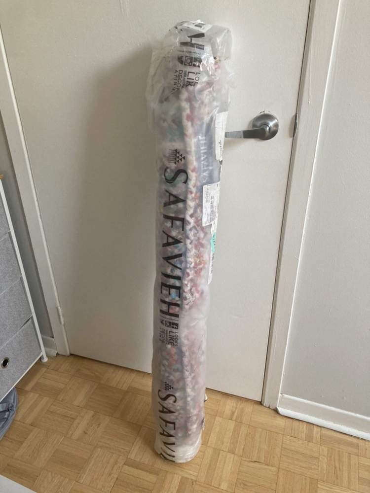 Bought by mistake and was unable to return it. It was only opened to see the tag with dimensions, but has never been unrolled or taken out of its original packaging. Original price was $184.99 from Wayfair.