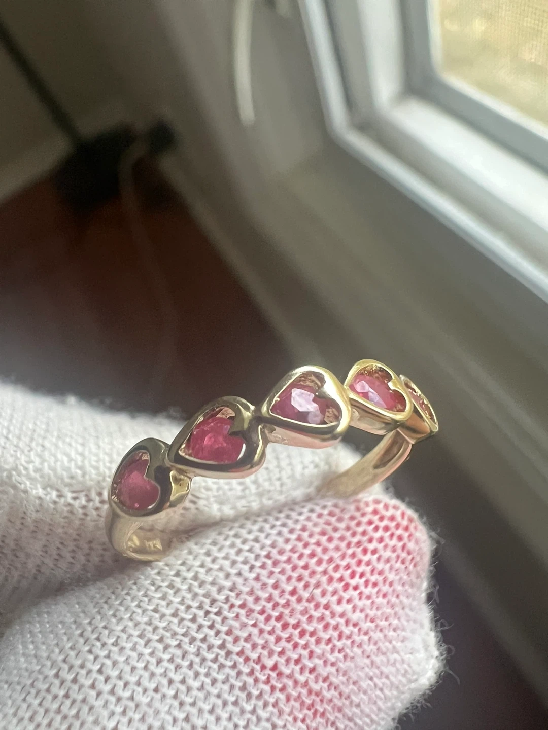 Selling a beautiful 10K gold ring featuring heart-shaped rubies . It's in great condition and would make a lovely addition to any jewelry collection Size 6.5-7 North east