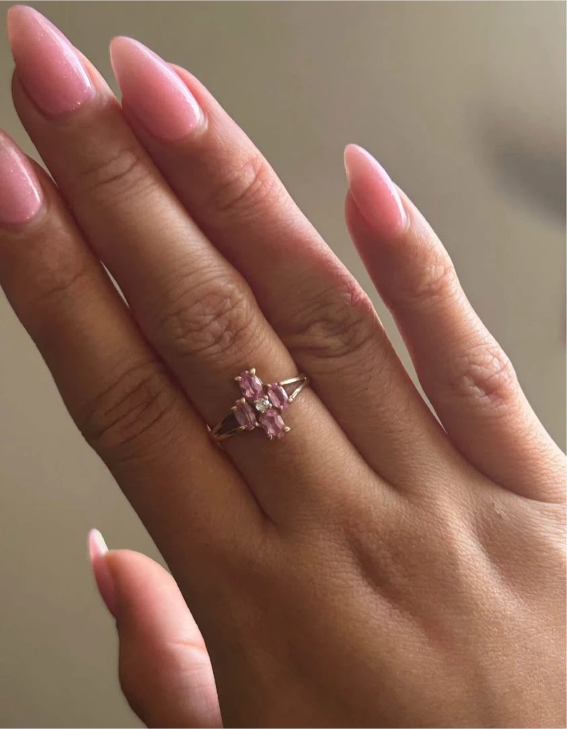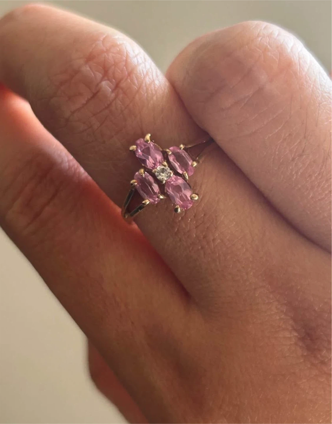 Selling a lovely 10K gold ring featuring Topaz stones and a small diamond accent. It's in great condition and ready for a new home! size is 5.75