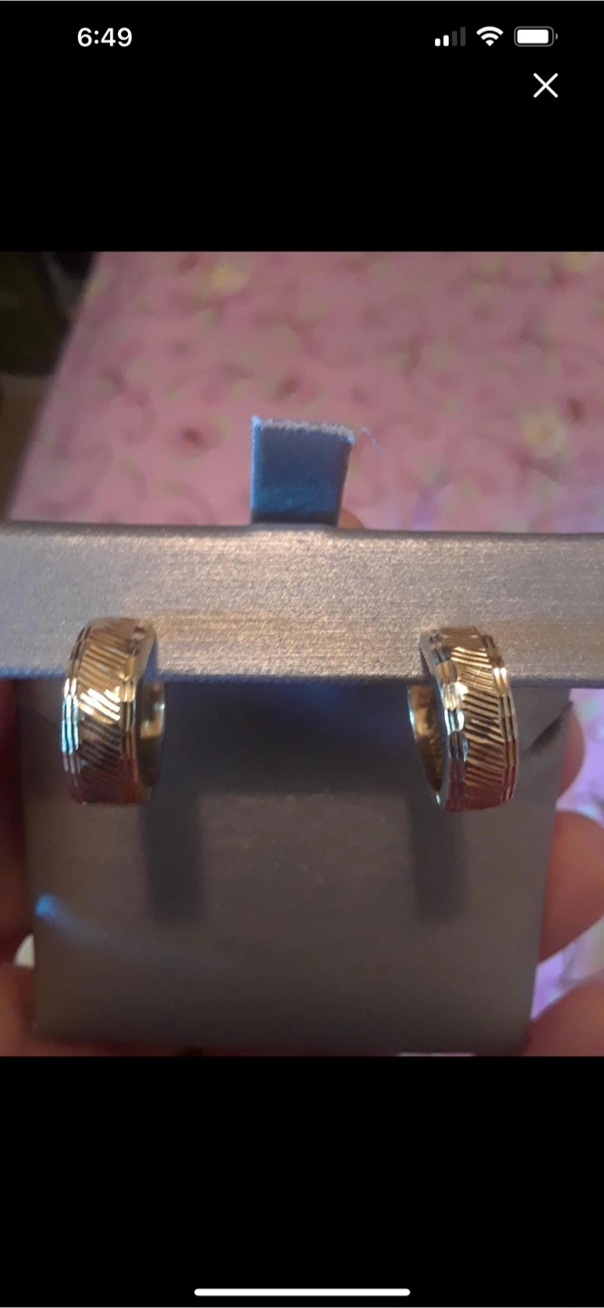 Pair of 10K solid gold hoop earrings. Textured design. Absolutely stunning .. great for daily wear or for dress up. Excellent quality. Brand new, unworn! 1.9 grams total weight Made in Italy Fixed price pls !! Thanks :)