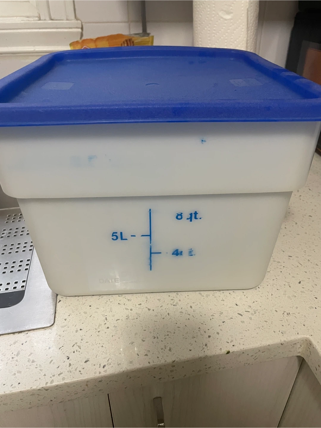 Selling a handy 10L plastic food storage container with a blue lid! It's in great shape and ready to keep your leftovers fresh or organize your pantry