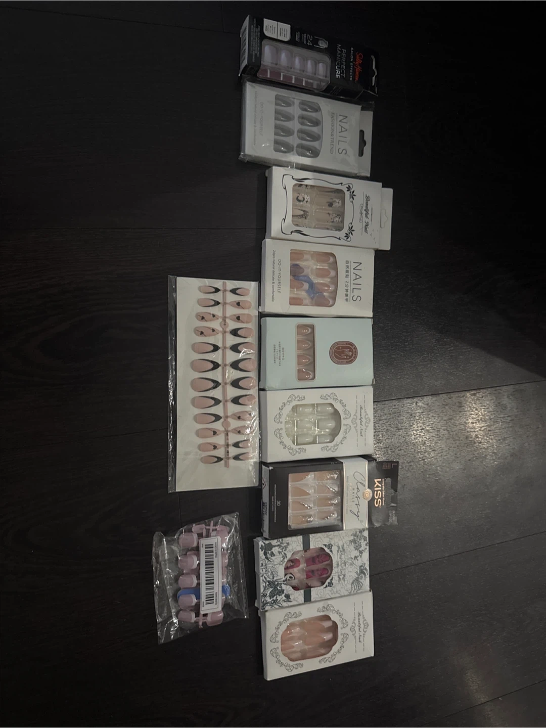 Selling a variety of press-on nails! There are several brands including Kiss, Nails Fashion&Trend, and Beautiful Nail. Perfect for a quick and easy manicure at home. Great condition and ready to wear! Unopened. Selling all for $50. For just 1 I am asking for $5.