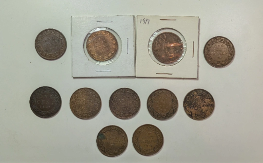 Selling a collection of Large Canadian one cent coins 1-1876 1-1901 1-1913 1-1916 4-1917 2-1918 1-1920