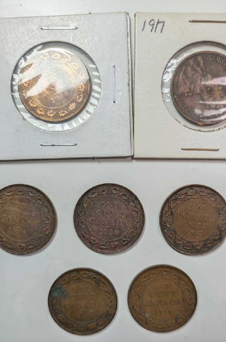 Selling a collection of Large Canadian one cent coins 1-1876 1-1901 1-1913 1-1916 4-1917 2-1918 1-1920
