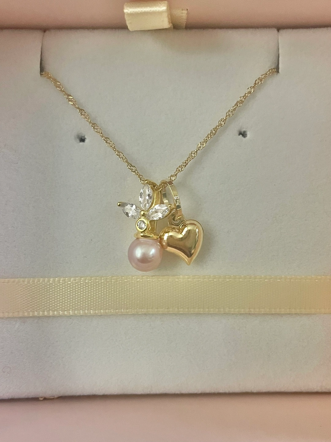 New, chain & heart pendant are 18k solid gold with sterling silver gold plated pearl pendant