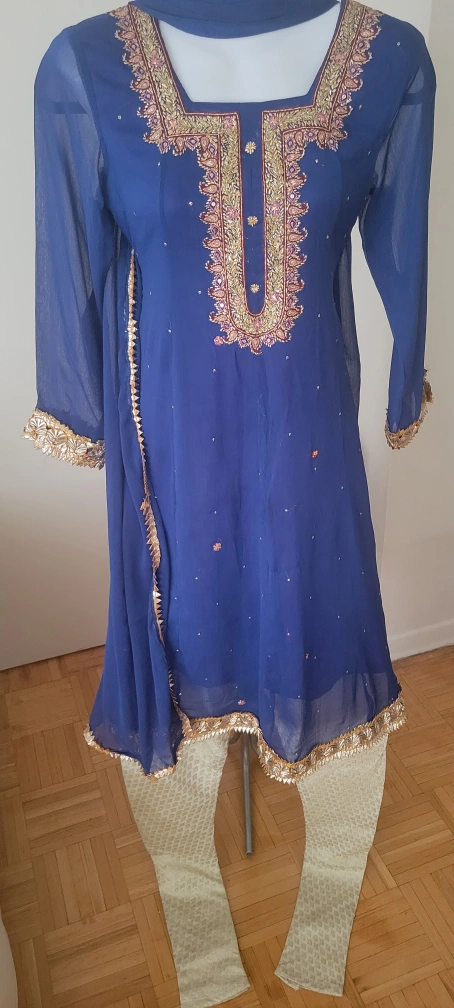 Blue Embroidered ( Hand Embroidered ), 3 pieses Dress