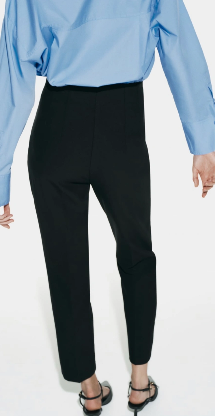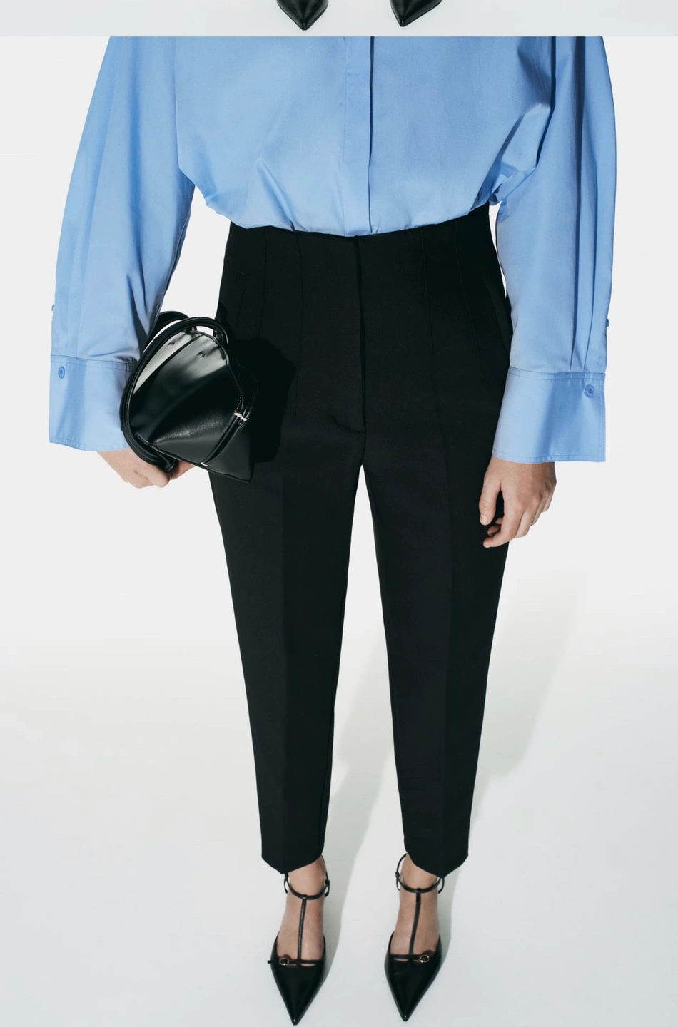 Zara pants with a high waist and pronounced seams at front and back . Front welt pockets. Front zip.metal hook. And interior button closure. Used a couple times but excellent condition.