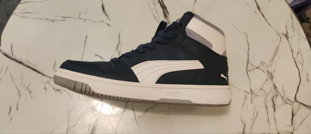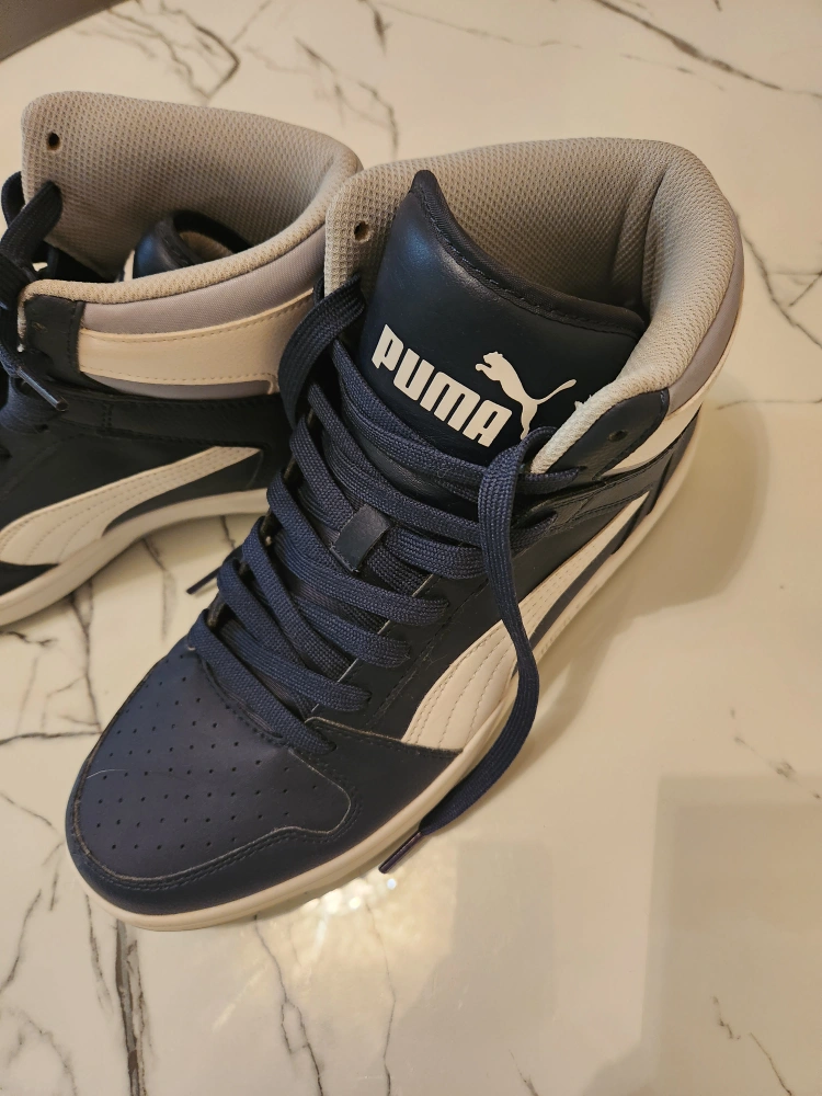 Puma Men's Rebound Layup Sneakers *Only worn once! Sz 10.5 -Blue & White, mid-top, round-toe, padded tongue, cushioned collar & foam sole (Very comfortable & absorbs impact) -No scuffs or marks, no wear or tear. My son only wore once! Excellent condition, looks new! -Only $60! -Pick up at Bathurst & Steeles, North York.