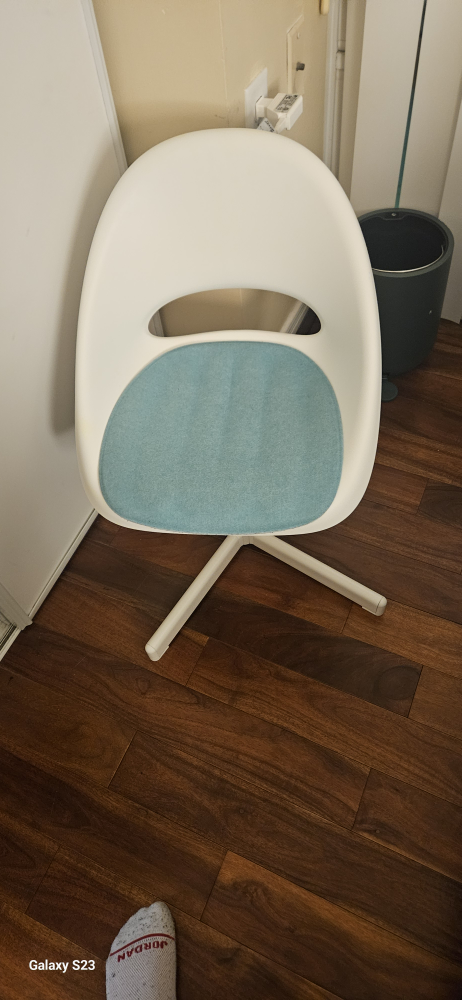 Selling a white IKEA chair for $53 dollars. It is in great condition and the seat has a cover that you can use for it that you can add on for $8 more dollars. Negotiable price.