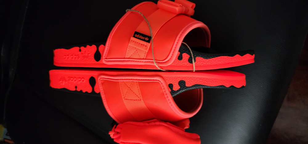 56Adidas Limited edition pouchylette Slide sandal Size 9 W Original price $84 + tax Selling price: $65 First come serve only 215 Mississauga Valley Blvd.