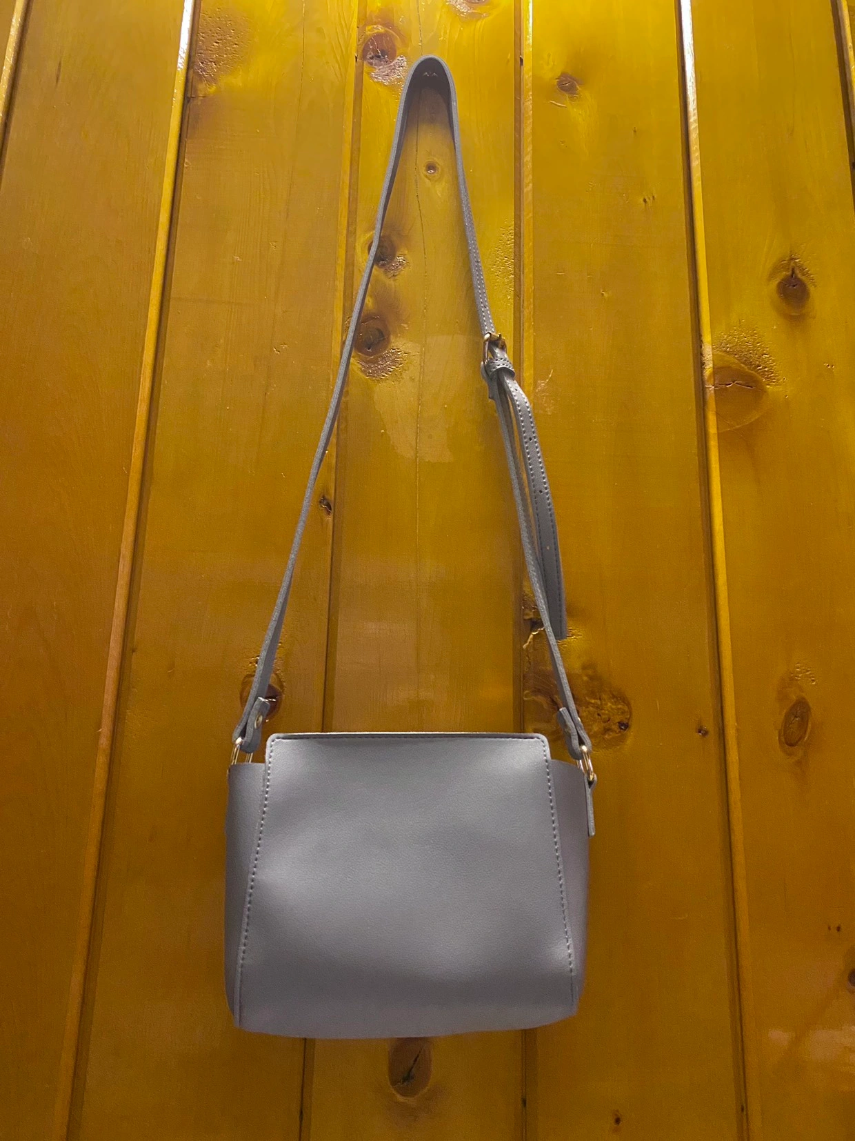 Miniso faux leather purse in excellent condition! The body of the bag is dusty blue and the metal details are gold-coloured. The only reason I'd like to sell it is because I have other bags that I use more. Other features: • Dimensions (LxWxH): 17x9x14 cm / 7x3.5x5.5 in. • Zipper closure • Adjustable (but not detachable) strap • Super easy to clean • No creases or fraying
