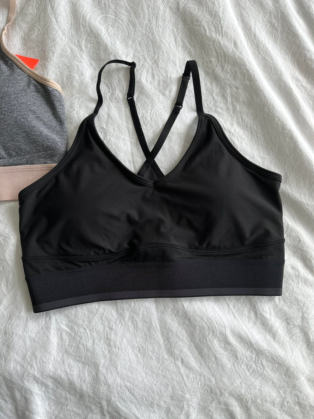 TWO brand new sports bras NEVER worn before. One still has its tags on it, but the other one was purchased without the tags. They’re both size L with medium support. Both for $15.