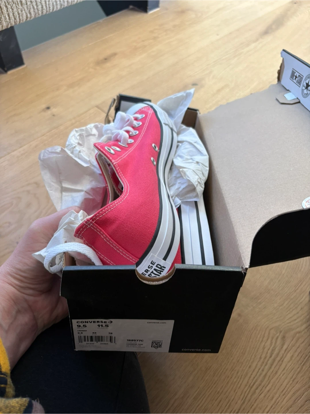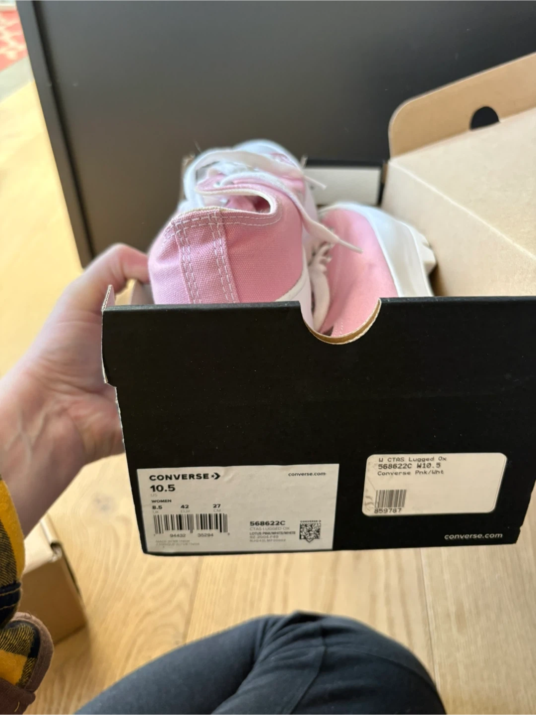 Brand new in box Converse Chuck Taylor Lugged Ox shoes. Women's size 10.5 (US) / 42 (EU). These feature a bright pink canvas upper and a platform sole.