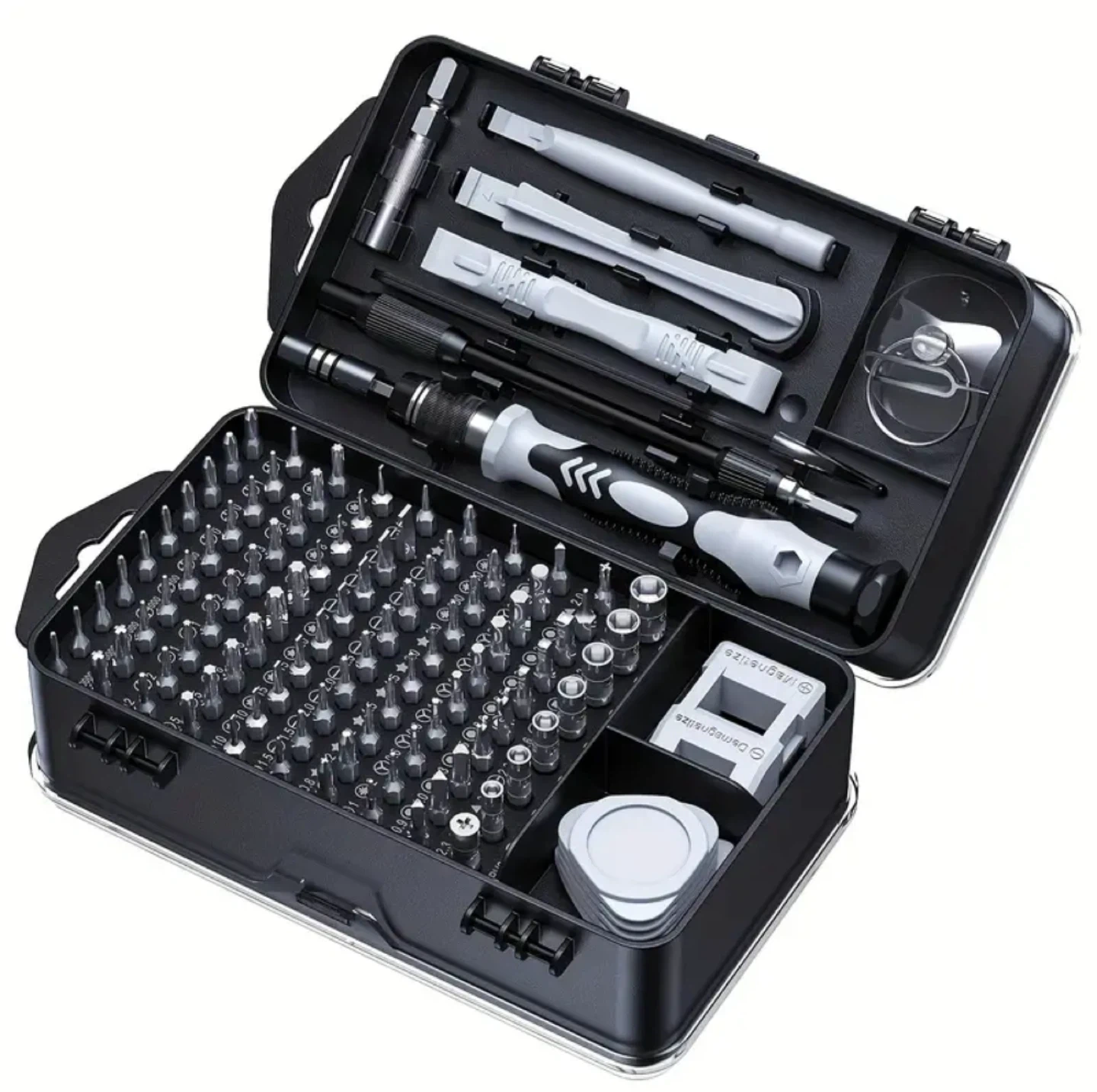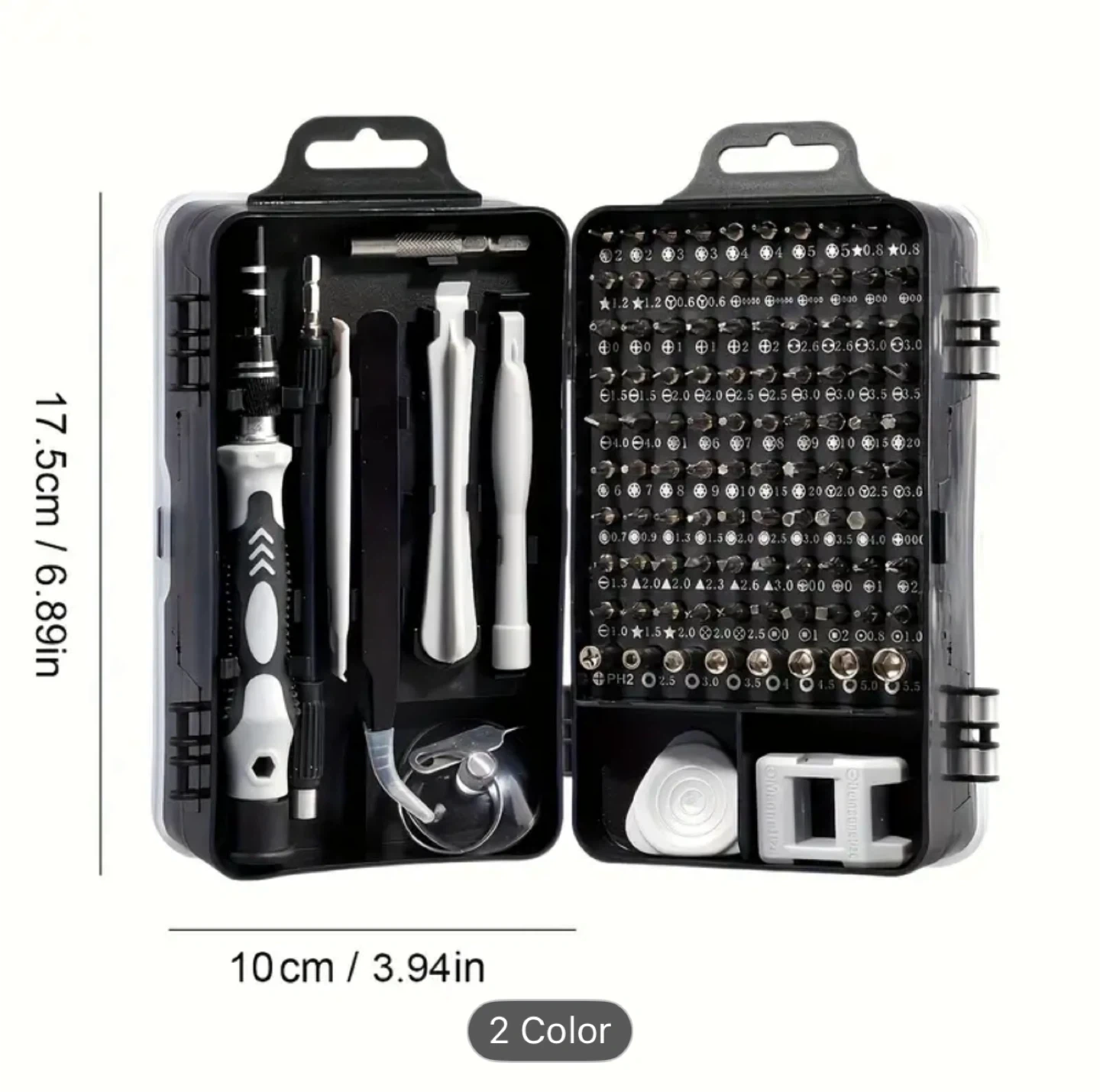 -63Looking to sell this handy precision screwdriver set! It's perfect for electronics repair and other small tasks such as mobiles phone, iphone, macbook, ipad, computer, watch etc. The 115 in 1 set includes a variety of bits and tools, all neatly organized in a compact case. Dimensions are approximately 17.5cm x 10cm.