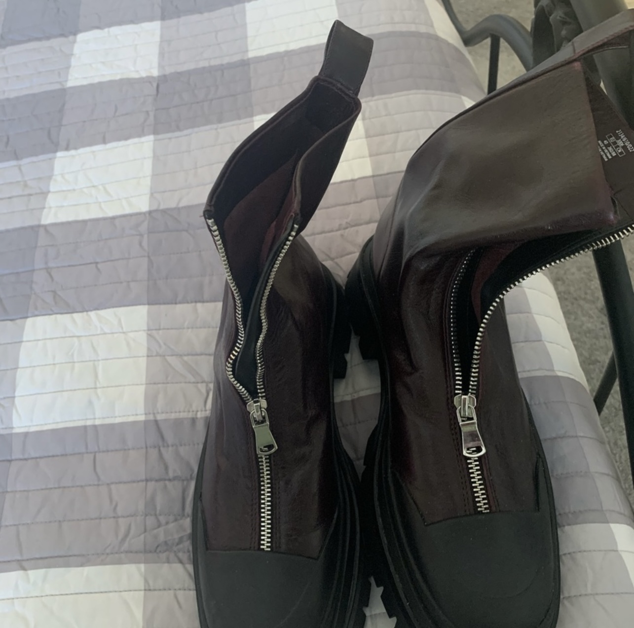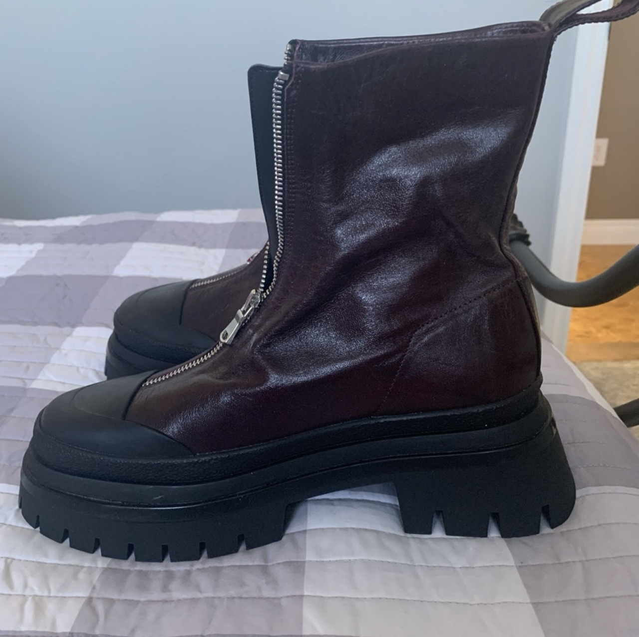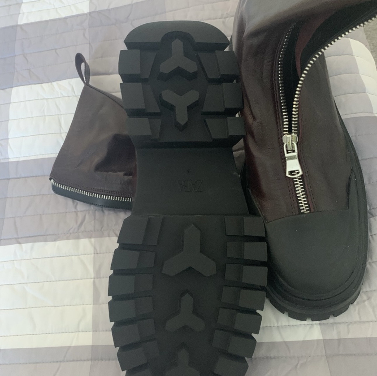 Zara Black Low Heeled Rubber Sole Boots - Size 8