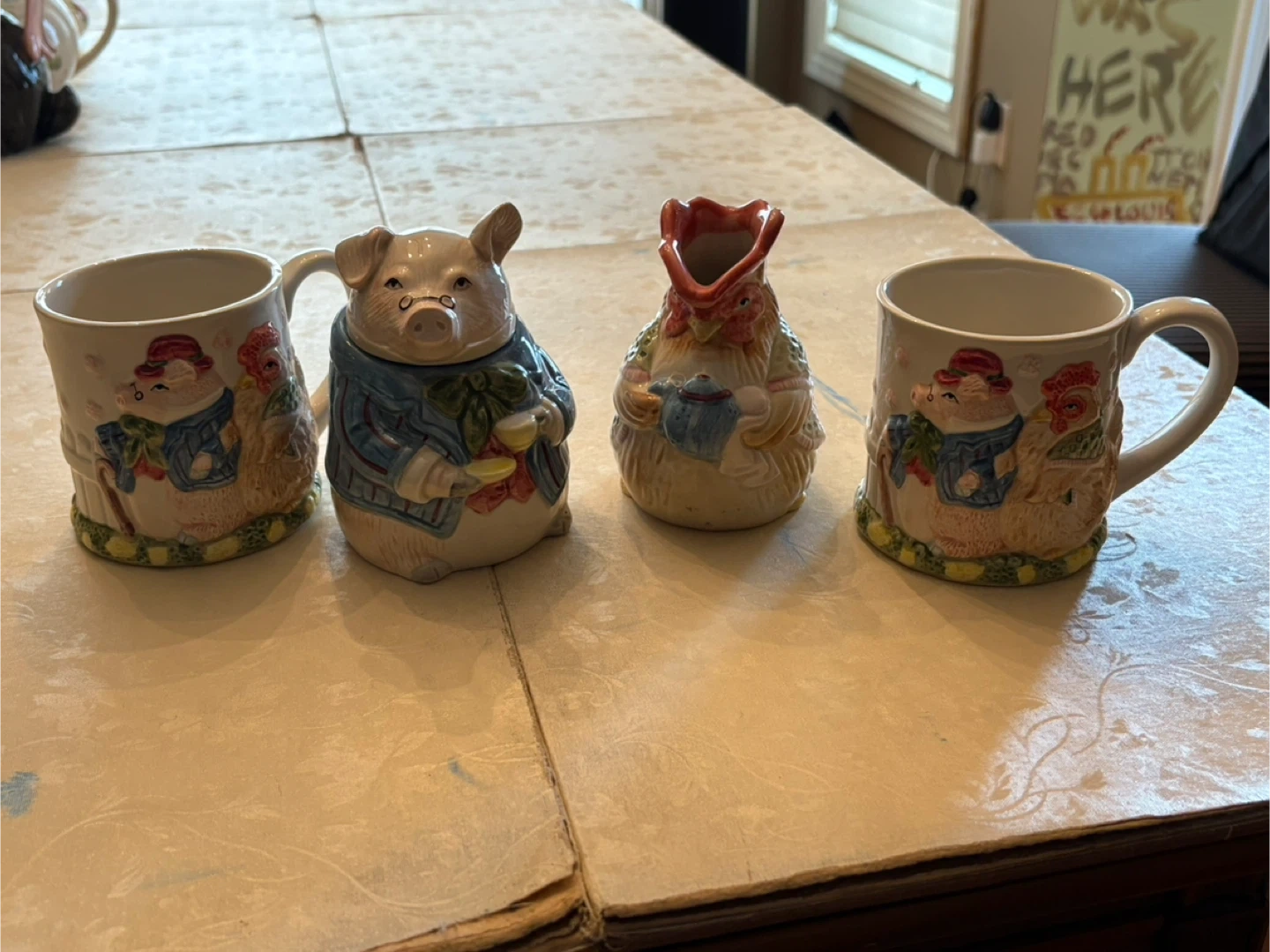 Selling a collection of decorative teapots and bowls. They are all in great condition and would be a lovely addition to any home. Perfect for collectors or anyone who appreciates unique and charming pieces