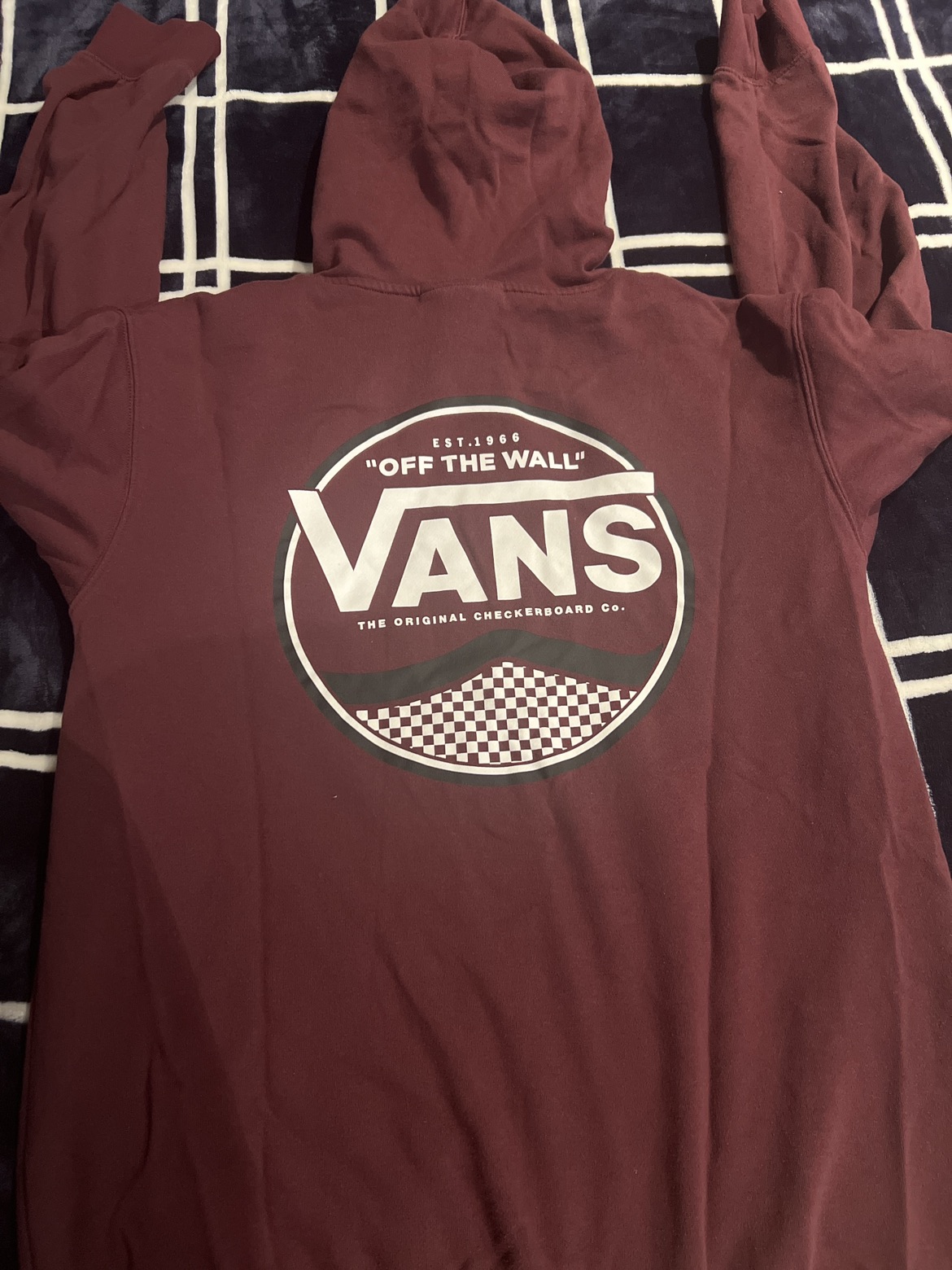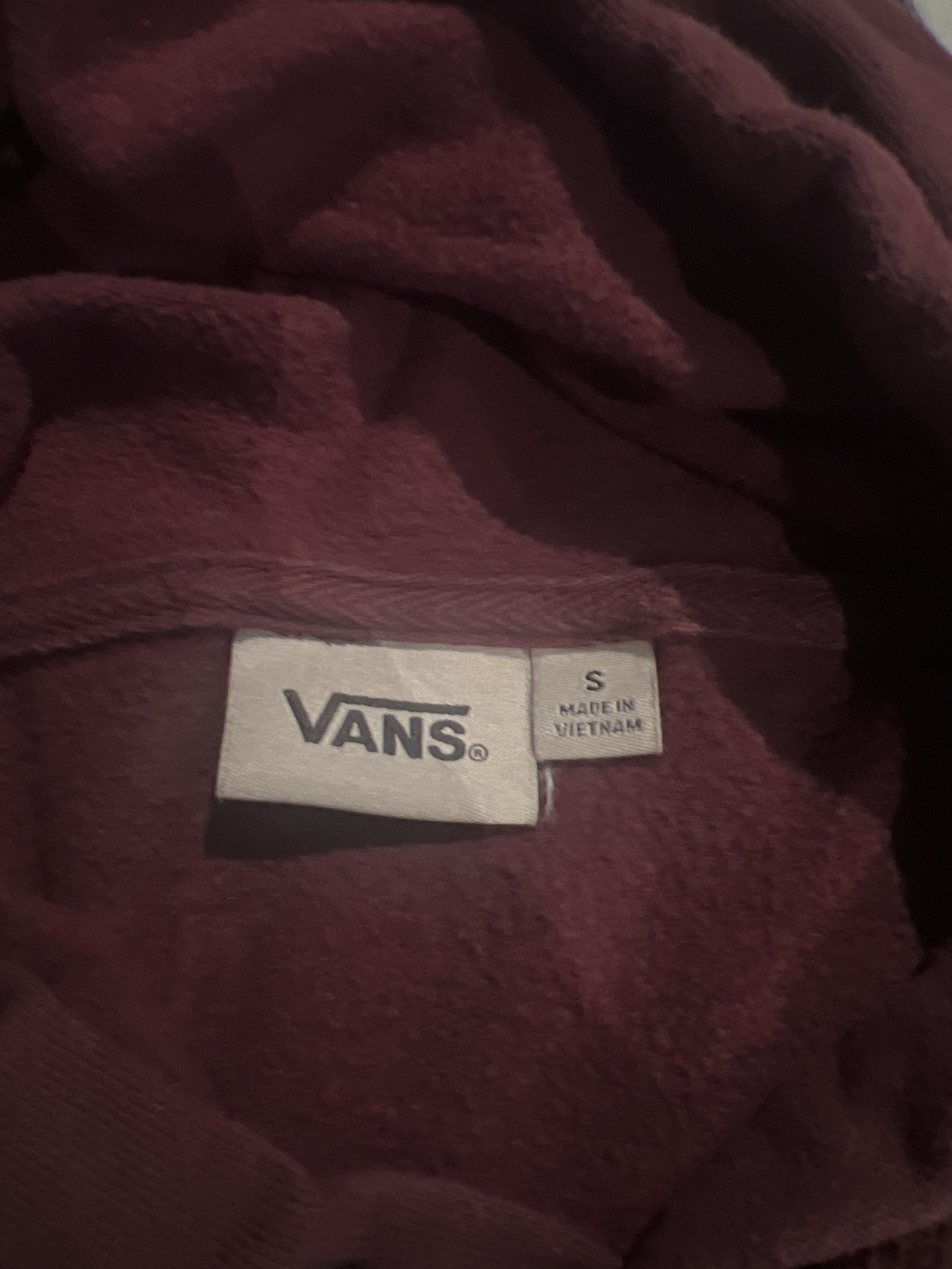 VANS hoodie. Used a few times. Small size for men, but I am a female and it fit’s well. Long length.