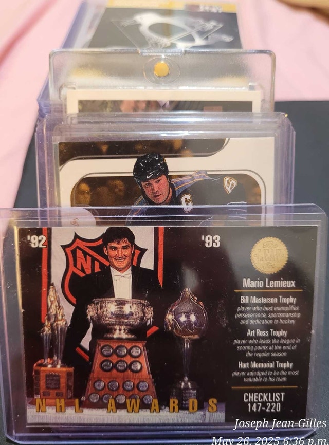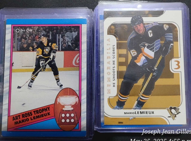50+ cards of the legendary Pittsburgh Penguins player Mario Lemieux. All cards are in excellent condition and well protected. Please see pictures for details. Includes team logo cards.