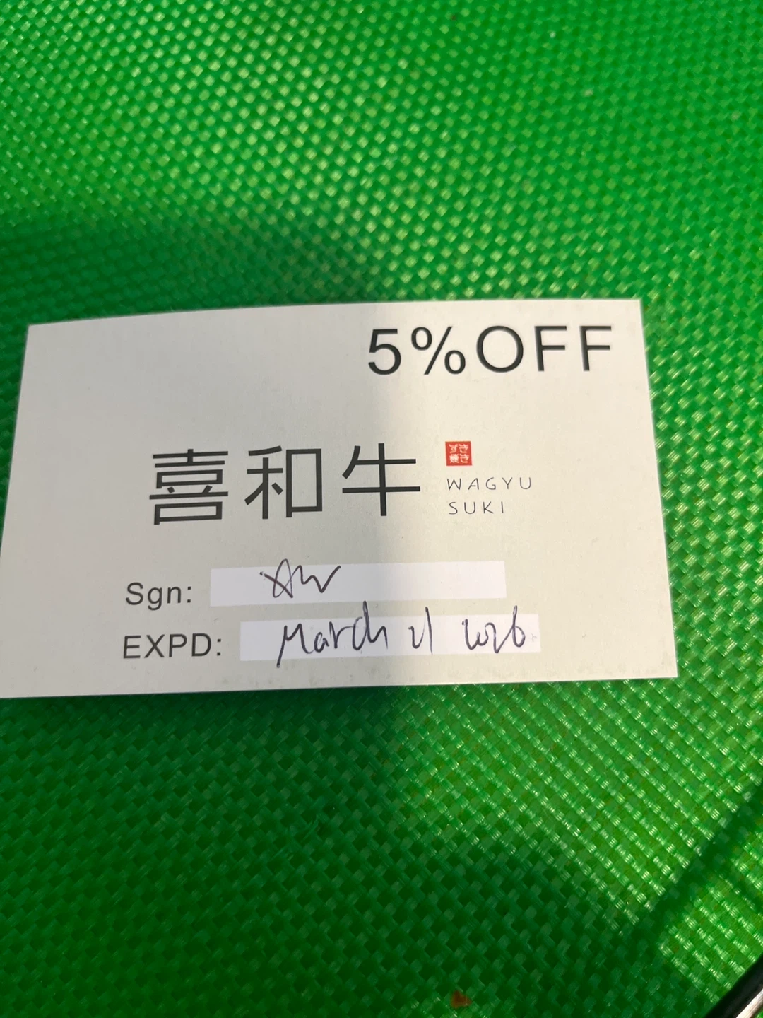 Buy & Sell5% OFF Wagyu Suki Discount Card - Expires March 21, 20265% OFF Wagyu Suki Discount Card - Expires March 21, 2026$5This is a 5% off discount card for Wagyu Suki. The card expires on March 21, 2026. It's a great way to save on your next meal!ConditionNewWHERE TO MEETRichmond HillView MapSELLERverifiedClaudiaHarding / Observatory 762 reviews0 chats·0 favorites·25 viewsSEND CHAT TO SELLERHi Claudia! I’m interested in your listing.Hi Claudia! I’m interested in your listing.Get the Karrot app to chatSign In to chat