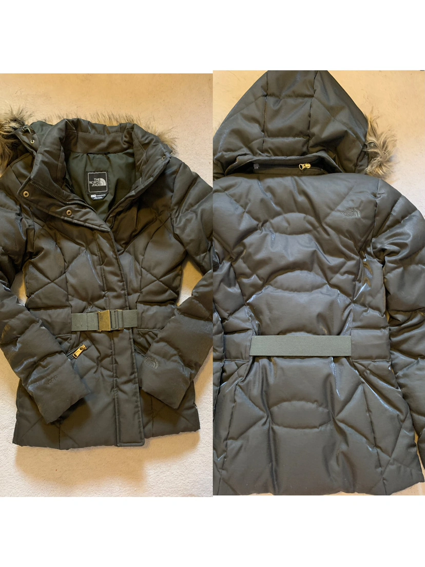 Smoke/ Pets Free Home. Serious Enquiries. Low ballers will be ignored. Priced to sell! Cash and Pick up near Warden and Steeles Authentic the NorthFace/ North Face Jacket Womens Down Belted XS (extra small) Size: XS ( extra small) Condition: Mint, Clean - no rips/ tears (wore few times) - Waterproof HyVent® exterior is crafted with metallic yarn for subtle shimmer - 550-fill-power down is lightweight and exceptionally warm - Zip-off hood features detachable faux-trim - Stylish quilting pattern - 1-way center-front zipper with hidden-snap placket for a clean look - Elastic belt with logo metal buckle and adjustable D-rings - Metallic embroidered logo at left sleeve hem and upper right back - Internal media pocket with logo media rivet - Retails: $379.99 + HST = $429.39 Tag with moose knuckle, TNA, Canada, Moncler, Mackage, Soia & Kyo *Low Ballers will be ignored. If the ad is up, it's still available. Please check out my other ads.